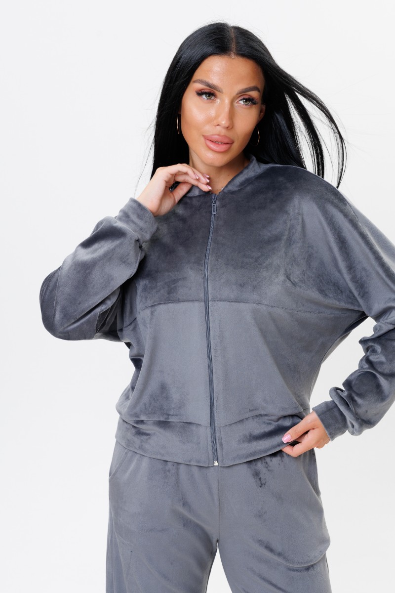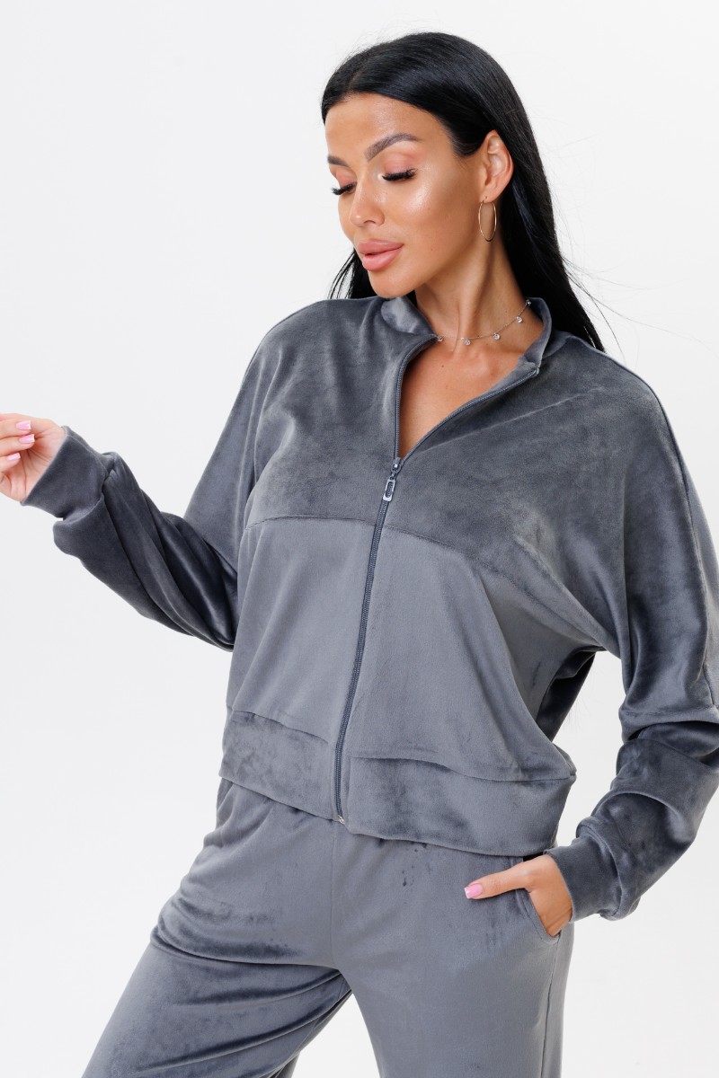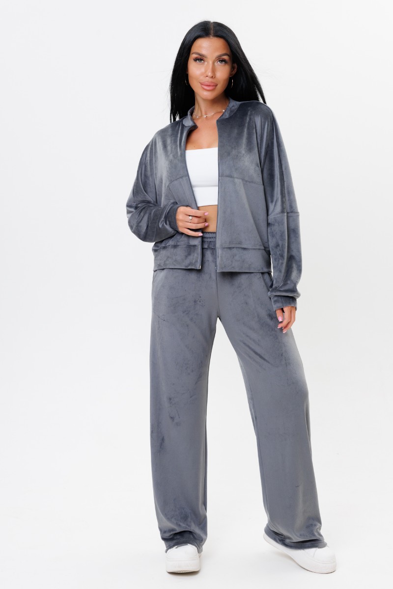 Костюм двойка женский 2228 велюр (р-ры: 44-52) серый