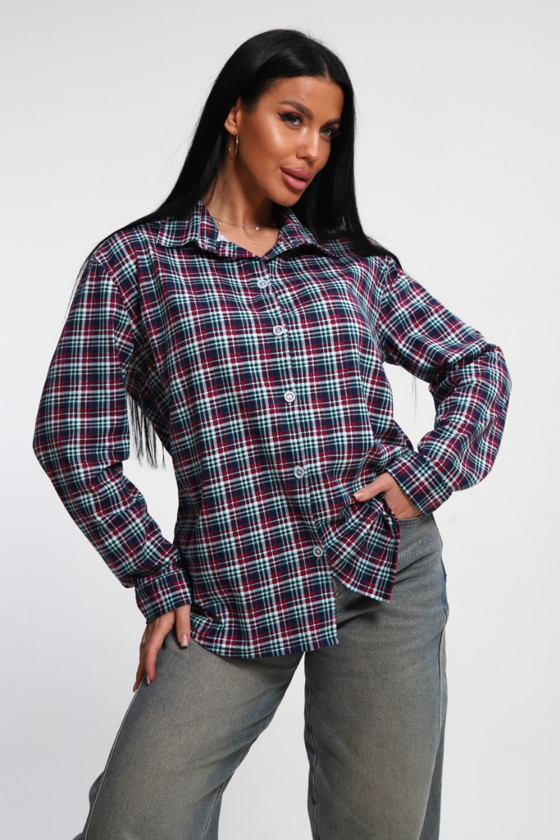 Представляем Вашему вниманию стильную женскую рубашку из кулирки - 100% натурального, дышащего хлопка. Модель имеет интересную расцветку, которая красиво смотрится и поднимает настроение. Рубашка хорошо сидит на фигуре и подчеркивает её достоинства. В ней Вы будете чувствовать себя комфортно и уверенно.