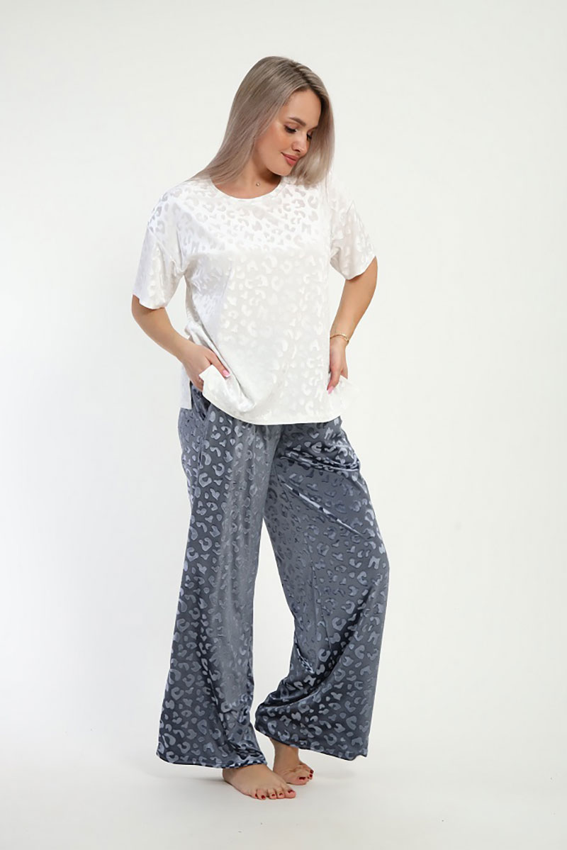 Представляем Вашему вниманию женский костюм двойку из иконвелюра. Состоит из длинных брюк и свободной футболки. Модель выполнена из мягкого материала, который не вызывает аллергических реакций на коже и хорошо пропускает воздух, позволяя коже дышать.