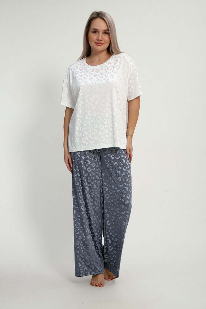 Костюм двойка женский "Амелия" велюр стрейч жаккард (р-ры: 48-58) серый