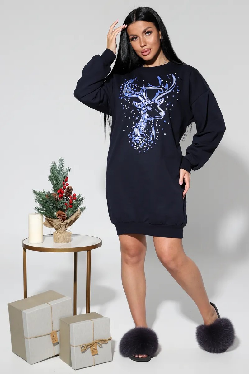 Туника женская 0101 "Олень" футер (р-ры: 42-56) синий