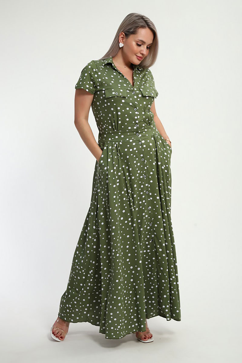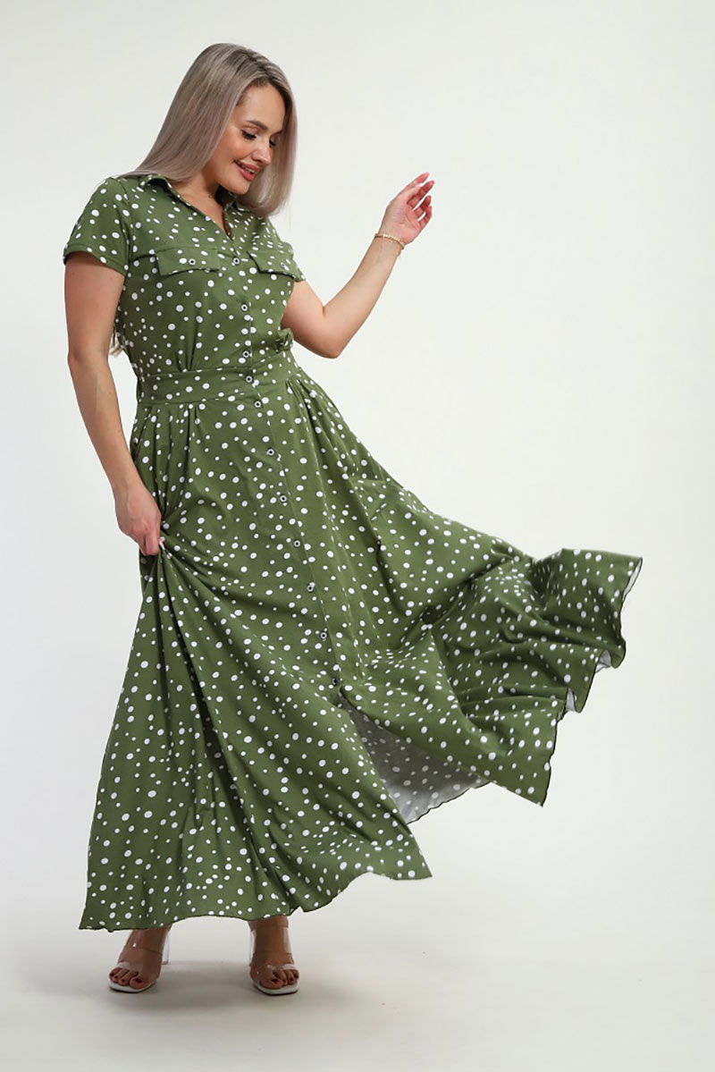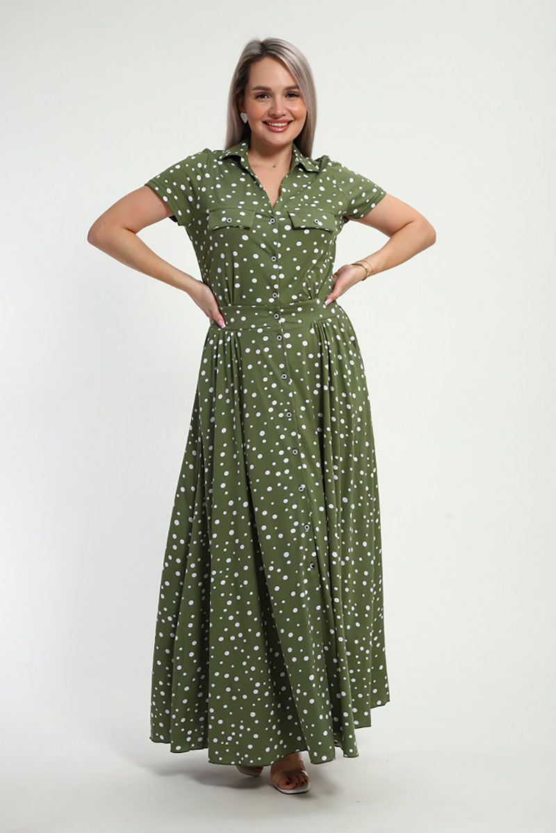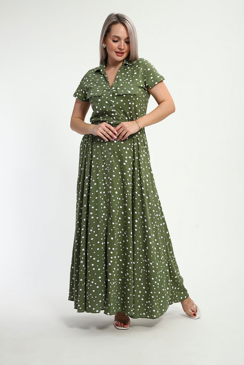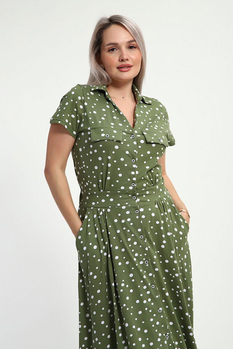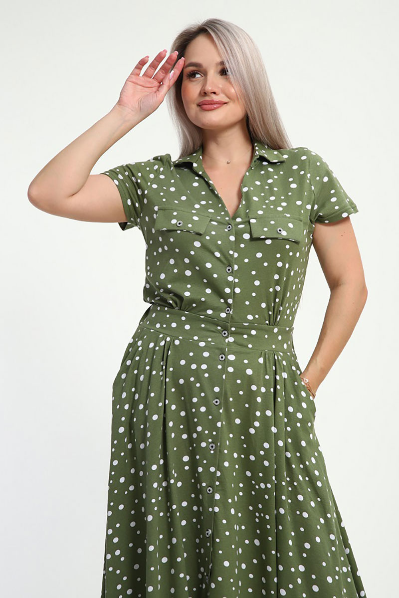 Платье женское "Фестиваль" кулирка (р-ры: 48-58) горох на зеленом