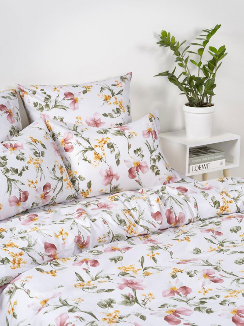 Перед первым использованием рекомендуется стирка. Перед стиркой пододеяльник и наволочки необходимо вывернуть наизнанку, простыню поместить внутрь пододеяльника. Стирать руками или в стиральной машине при температуре 30 градусов в режиме бережной стирки мягкими моющими средствами, не содержащими отбеливателей. Гладить с изнанки при средней температуре.