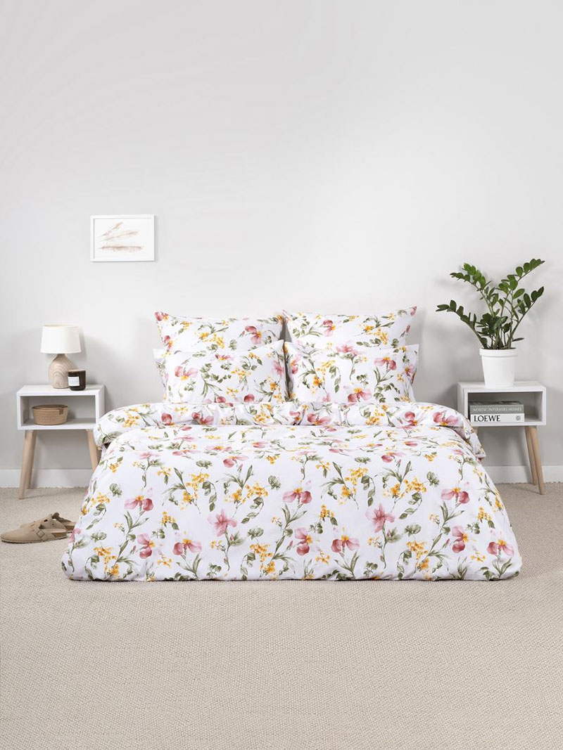 Перед первым использованием рекомендуется стирка. Перед стиркой пододеяльник и наволочки необходимо вывернуть наизнанку, простыню поместить внутрь пододеяльника. Стирать руками или в стиральной машине при температуре 30 градусов в режиме бережной стирки мягкими моющими средствами, не содержащими отбеливателей. Гладить с изнанки при средней температуре.