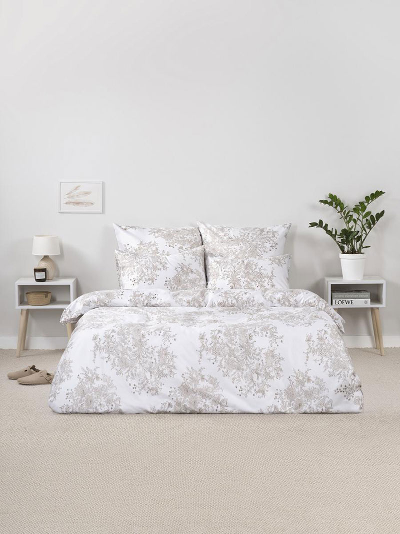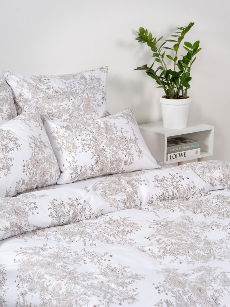 Перед первым использованием рекомендуется стирка. Перед стиркой пододеяльник и наволочки необходимо вывернуть наизнанку, простыню поместить внутрь пододеяльника. Стирать руками или в стиральной машине при температуре 30 градусов в режиме бережной стирки мягкими моющими средствами, не содержащими отбеливателей. Гладить с изнанки при средней температуре.