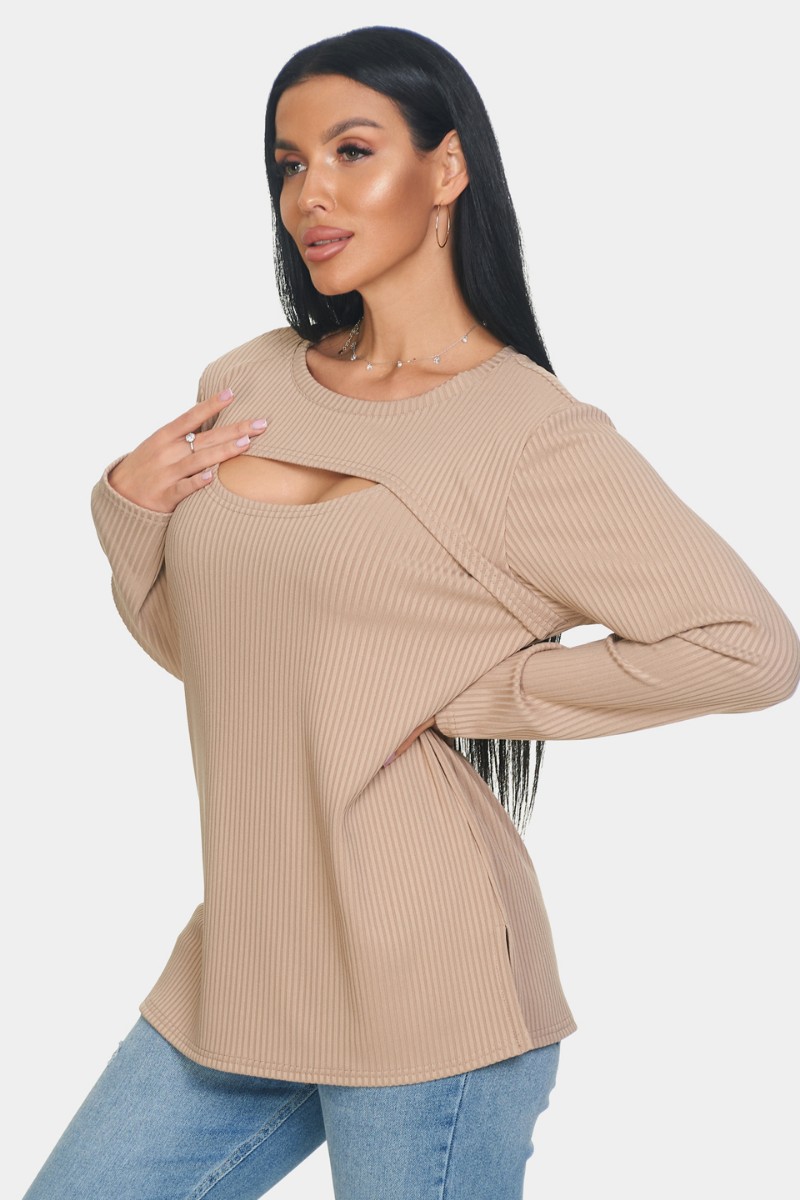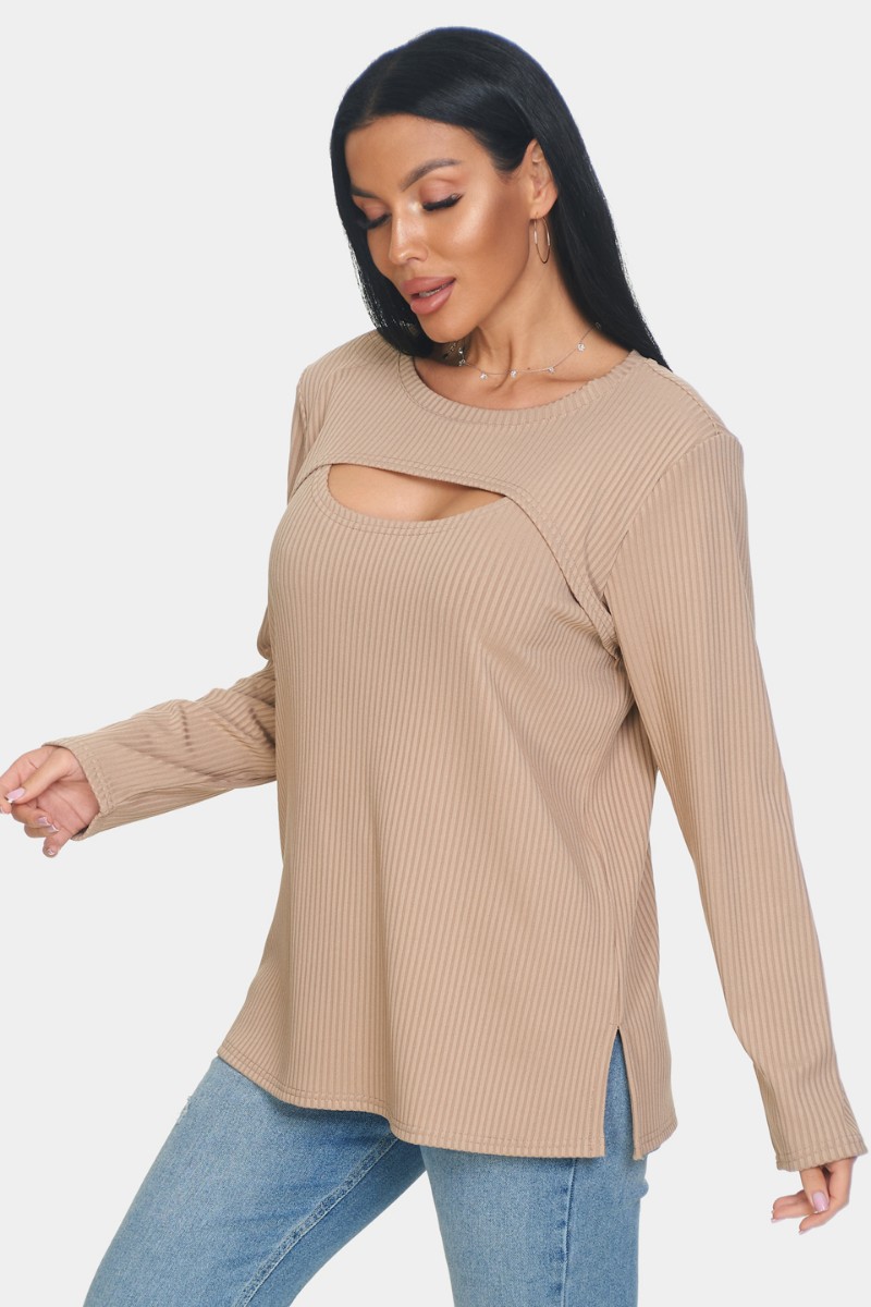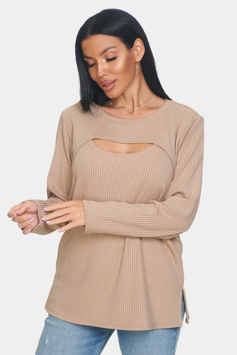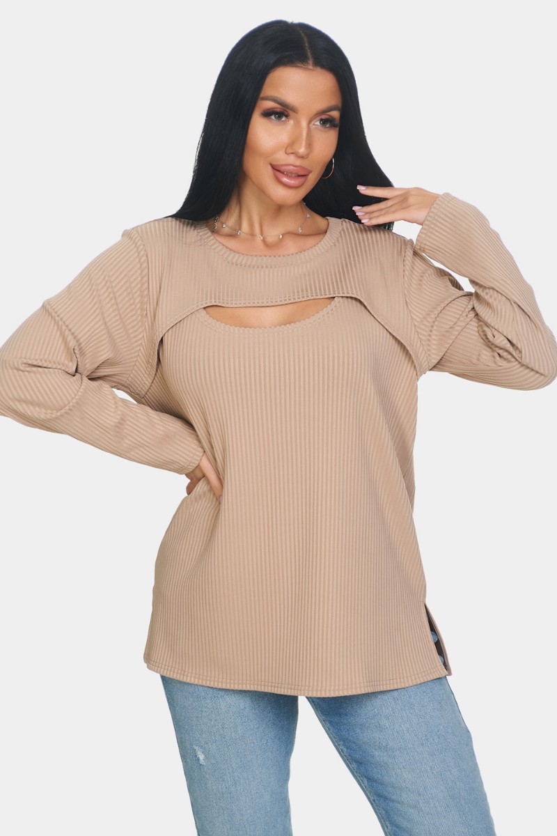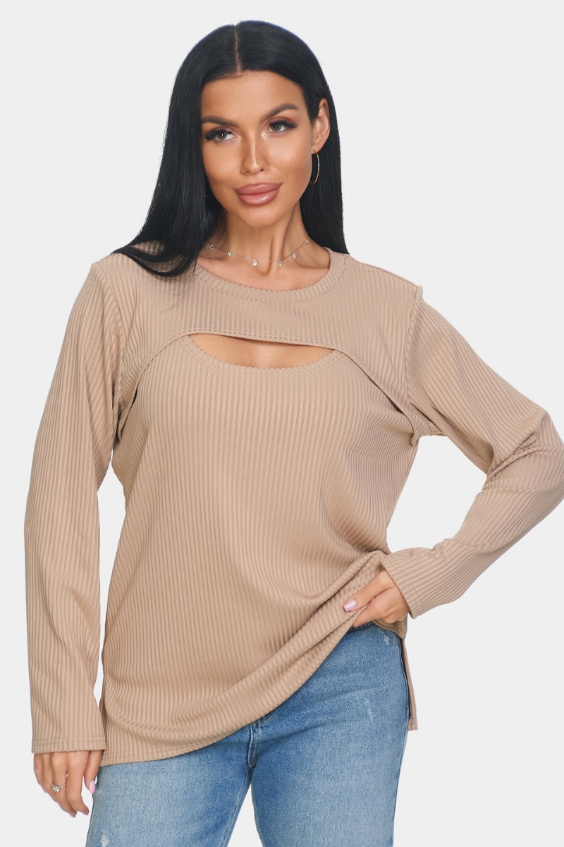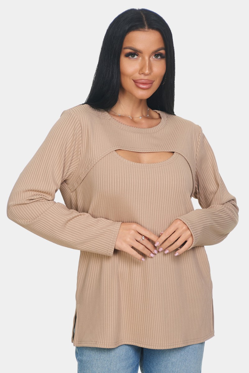 Лонгслив женский "Мия" лапша (р-ры: 50-68) бежевый