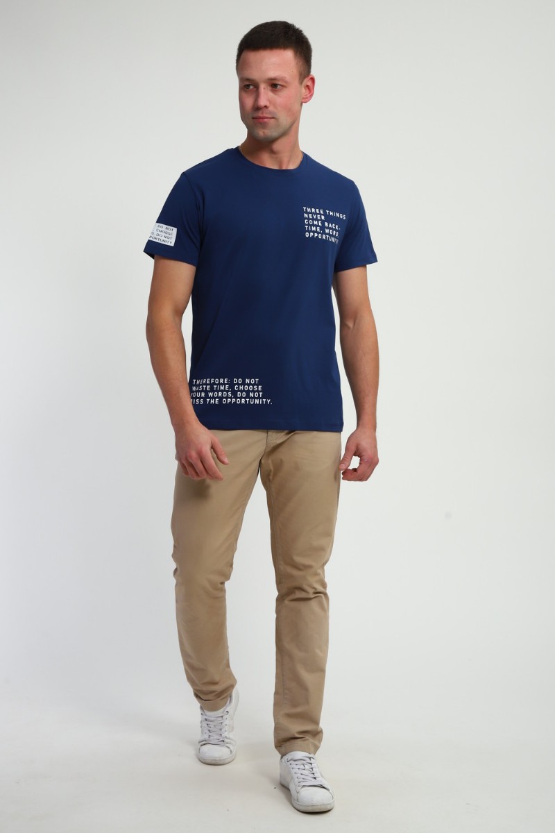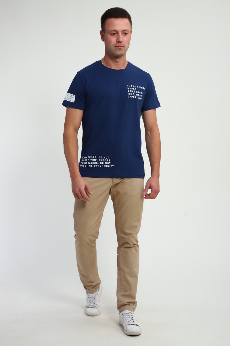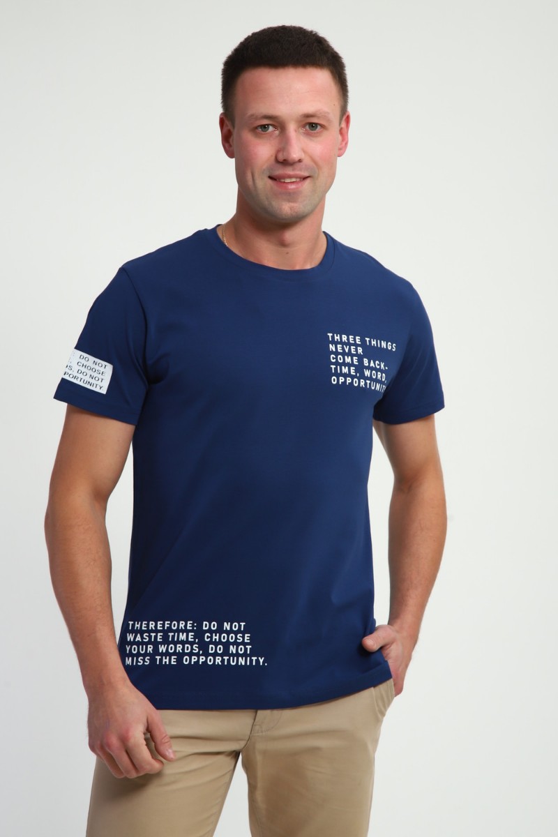 Футболка мужская №052 кулирка с лайкрой (р-ры: 48-60) индиго
