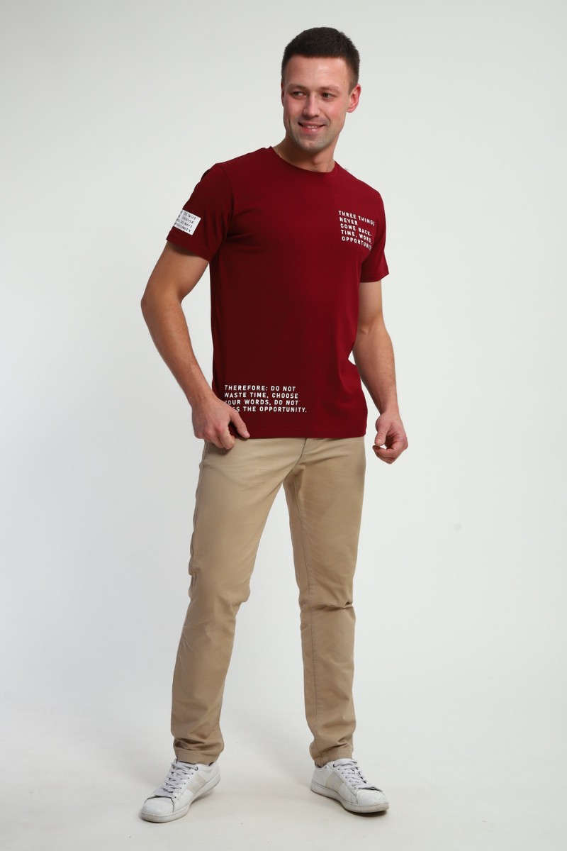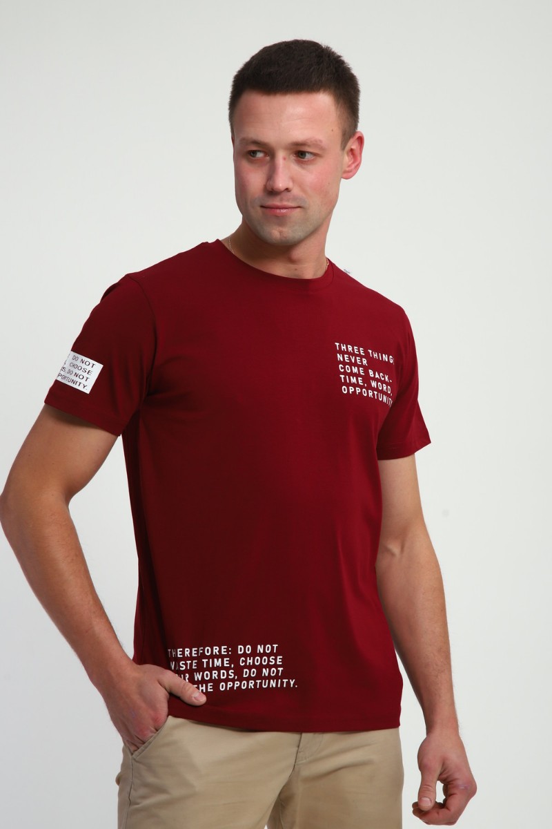 Футболка мужская №052 кулирка с лайкрой (р-ры: 48-60) бордовый