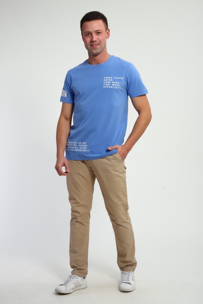 Футболка мужская №052 кулирка с лайкрой (р-ры: 48-60) голубой