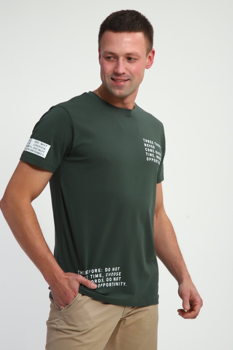 Футболка мужская №052 кулирка с лайкрой (р-ры: 48-60) хаки