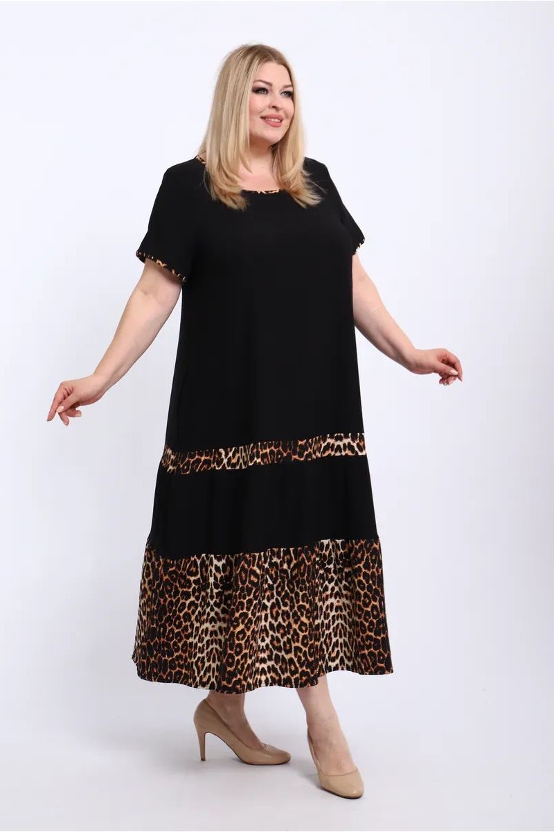 Платье женское ПЛ-005 жатка (р-ры: 50-68) золотой леопард