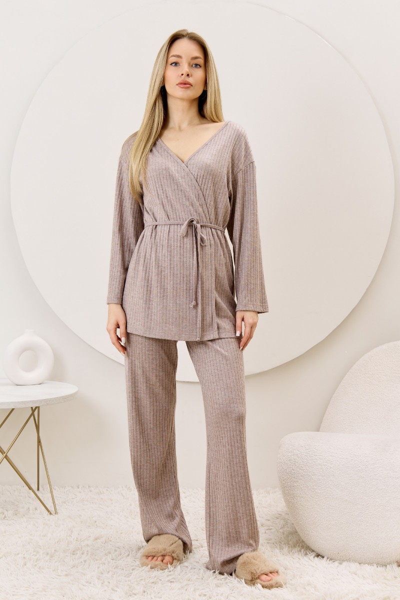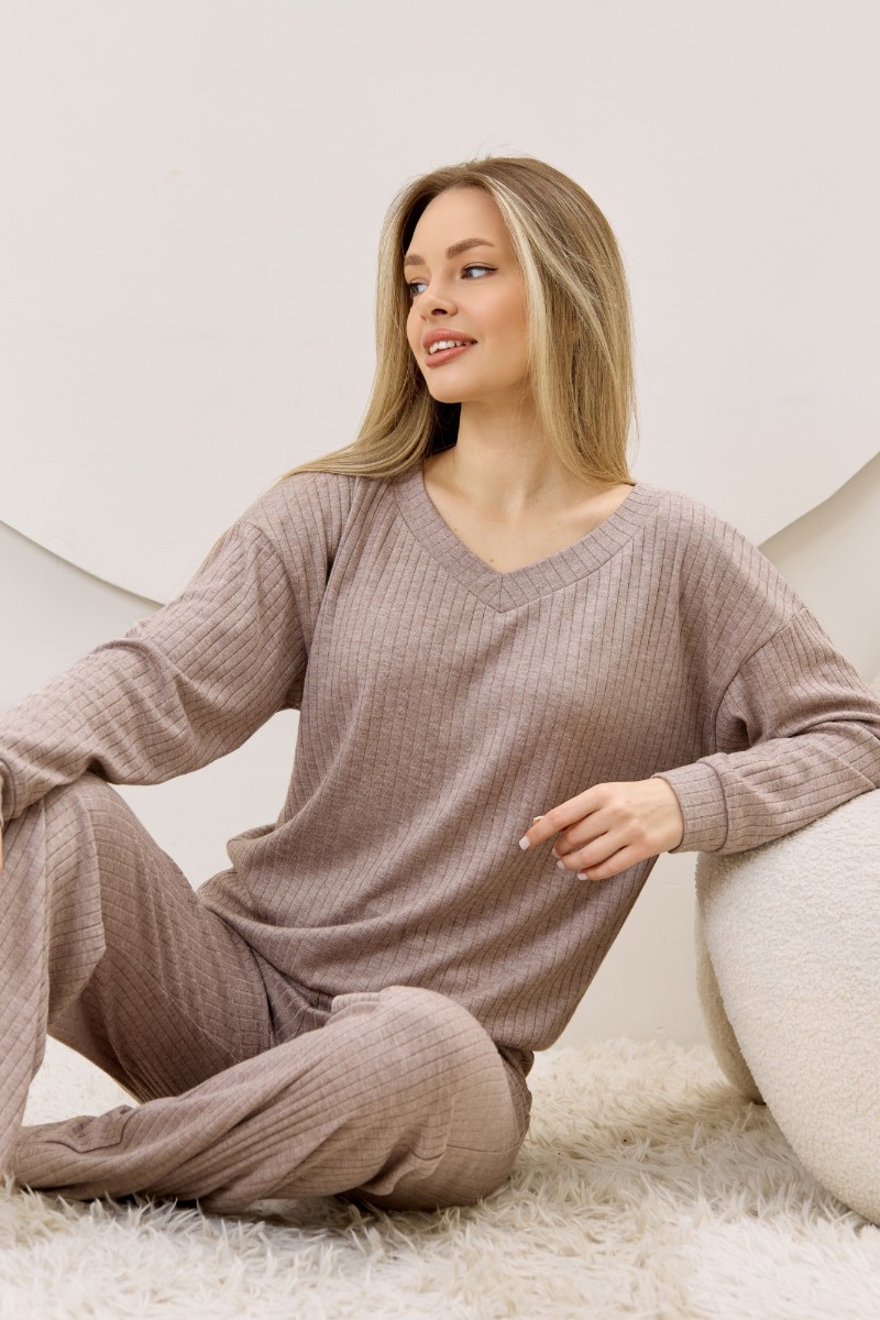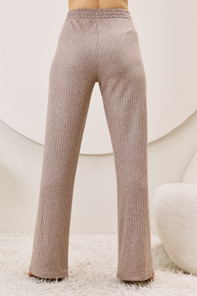 Представляем Вашему вниманию женские брюки из гладкокрашенного трикотажного фактурного полотна в «рубчик» с добавлением ангоры, полуприлегающего силуэта, длинные, слегка расширенные книзу, на притачном поясе с эластичной тесьмой внутри.