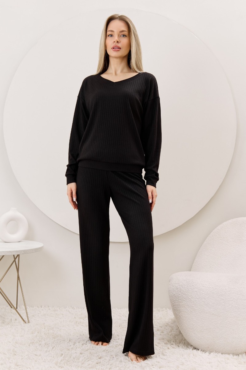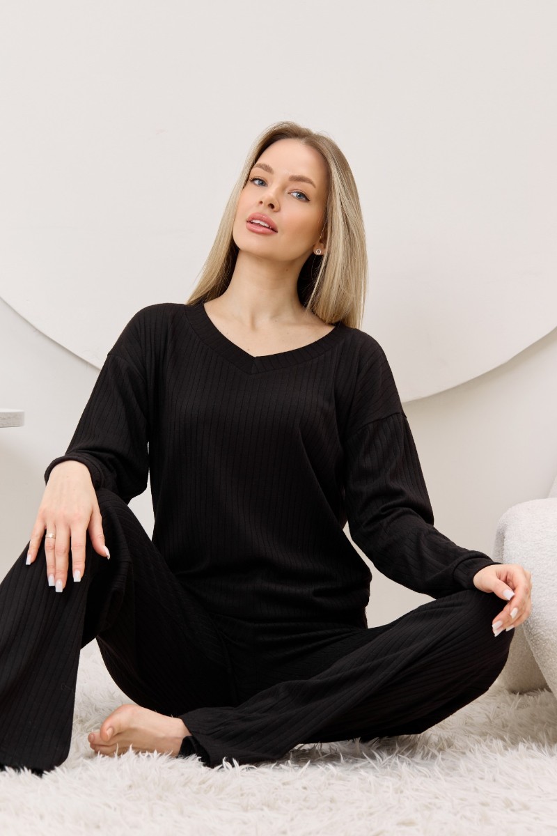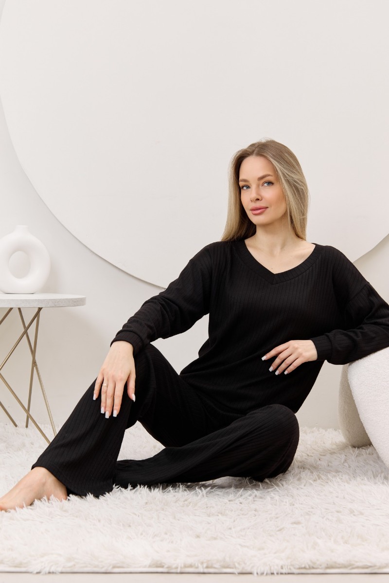 Представляем Вашему вниманию женские брюки из гладкокрашенного трикотажного фактурного полотна в «рубчик» с добавлением ангоры, полуприлегающего силуэта, длинные, слегка расширенные книзу, на притачном поясе с эластичной тесьмой внутри.