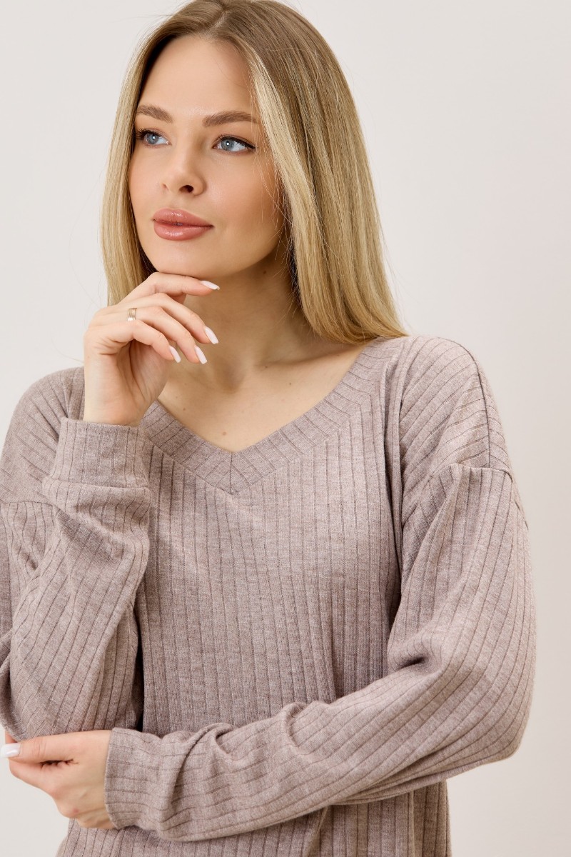 Джемпер женский "Эвила-3" фактурный трикотаж (р-ры: 44-54) капучино