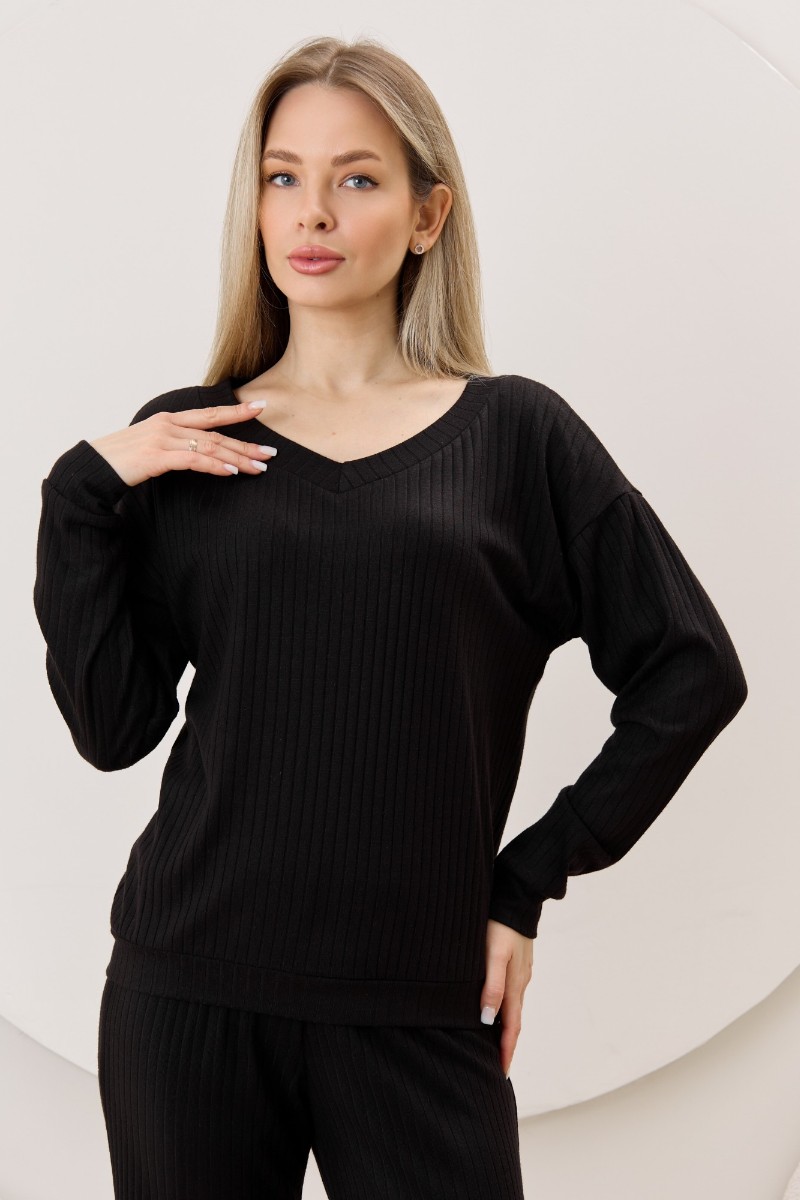 Джемпер женский "Эвила-3" фактурный трикотаж (р-ры: 44-54) черный