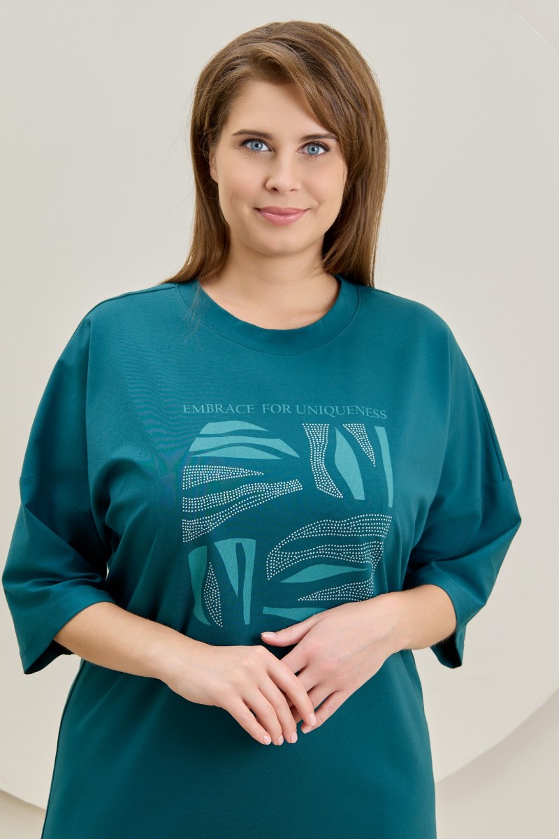 Туника женская "Прима" кулирка с лайкрой (р-ры: 46-60) изумрудный