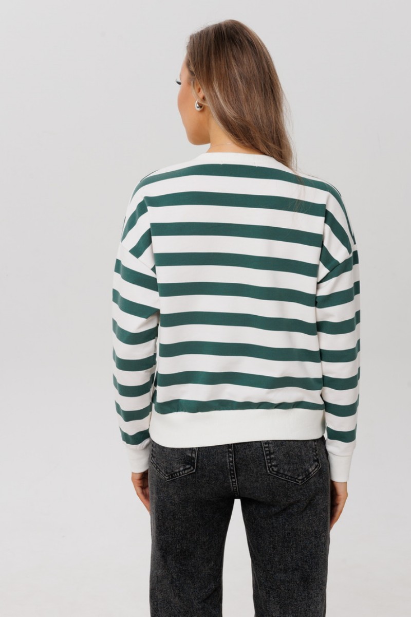 Представляем Вашему вниманию женскую толстовку, сшитую из приятного телу, высококачественного футера 2-х нитки петли пенье. Модель с круглой горловиной, рукавами с эластичными манжетами и классическим принтом в крупную контрастную полоску.