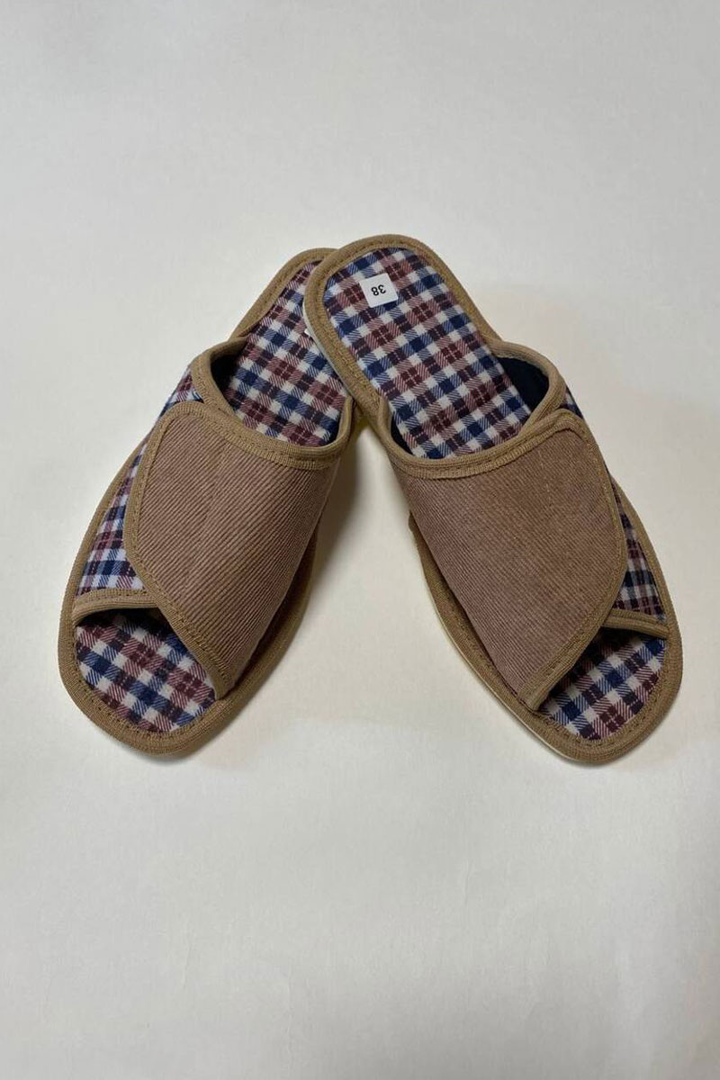 Тапки женские "Lepilov" арт. 120 вельвет с рогожкой + плательный хлопок (последний размер) бежевый вельвет с бордовой клеткой 38