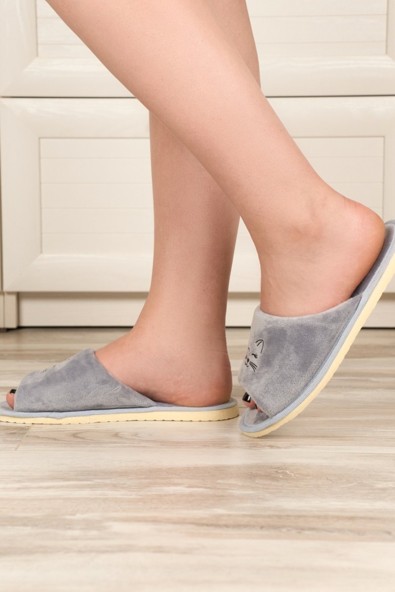 Представляем Вашему вниманию легкие домашние женские тапочки. Их можно предложить своим гостям, или взять с собой на отдых, в дорогу. А как приятно после тяжелого рабочего дня переобуться в тапочки с комфортной посадкой по ноге! Тапочки с открытым мыском не натирают ноги. Верхняя часть домашних тапок выполнена из качественного велюра, который легко пропускает воздух. В таких тапочках нога не потеет и не скользит. Они спасают от холодного и мокрого пола и подходят на любую полноту стопы. Стелька выполнена из качественного велюра, благодаря которой их очень комфортно носить как с носком, так и на босу ногу! Подошва изготовлена из ЭВА, это легкий, упругий, эластичный и износостойкий материал. Все швы качественно обработаны производителем. Классическая модель подойдет для носки в любое время года: в осенний, весенний и летний, в зимний период, будет удобна в качестве домашних комнатных, дачных или рабочих.