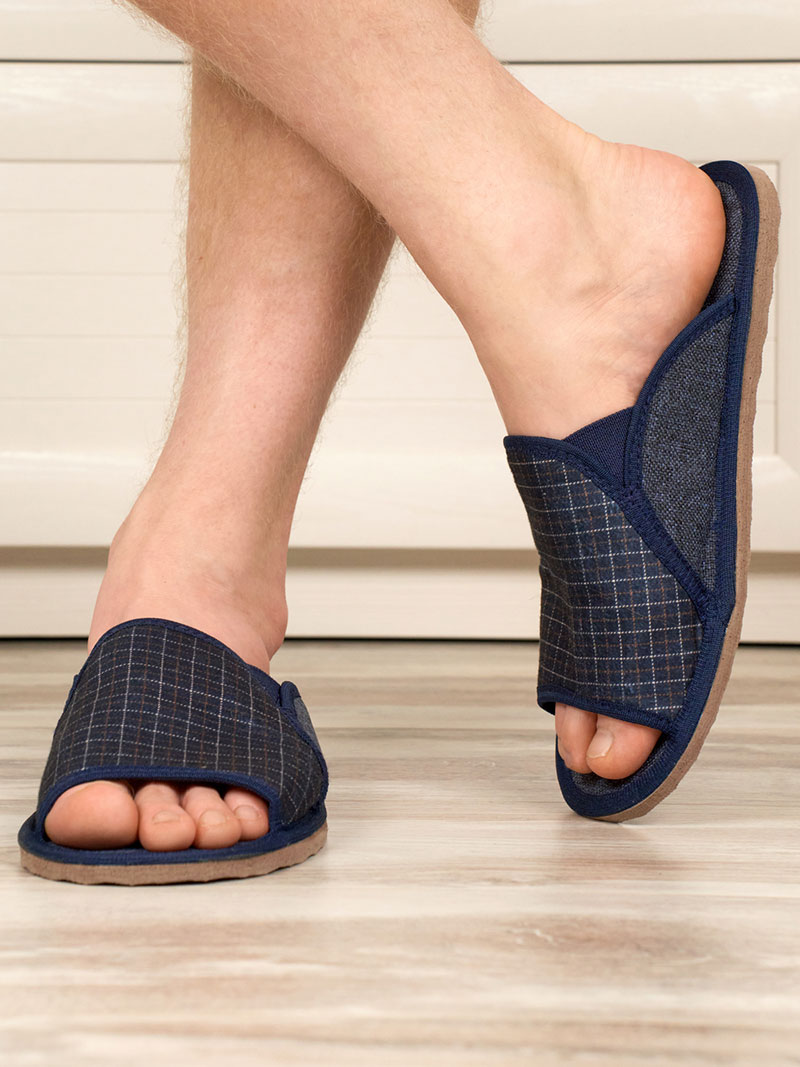 Представляем Вашему вниманию легкие домашние тапочки. Прекрасно подойдут для ежедневного ношения дома и на даче в любое время года. Удобная домашняя модель отличается открытым мыском (носом) и пяткой, прочной, нескользкой подошвой из ЭВА (EVA) и верхом из плотного текстиля. Стелька выполнена из качественной рогожки, благодаря которой их очень комфортно носить как с носком, так и на босу ногу! У нас есть тапочки в разных цветовых сочетаниях Классическое повседневное изделие снабжено эластичными резинками, благодаря которым тапочки подойдут для стопы любой полноты: узкой или широкой, очень полной, проблемной, с любым подъемом, и дополняется красивой окантовкой, в том числе с декоративной прострочкой. Элегантная, на каждый день красиво смотрится на голой ноге или на ноге с носком. Трендовые тапочки носят в любое время года: в летний и зимний, демисезонный: осенний и весенний период в качестве комнатных, дачных прогулочных или рабочих, гостевых.