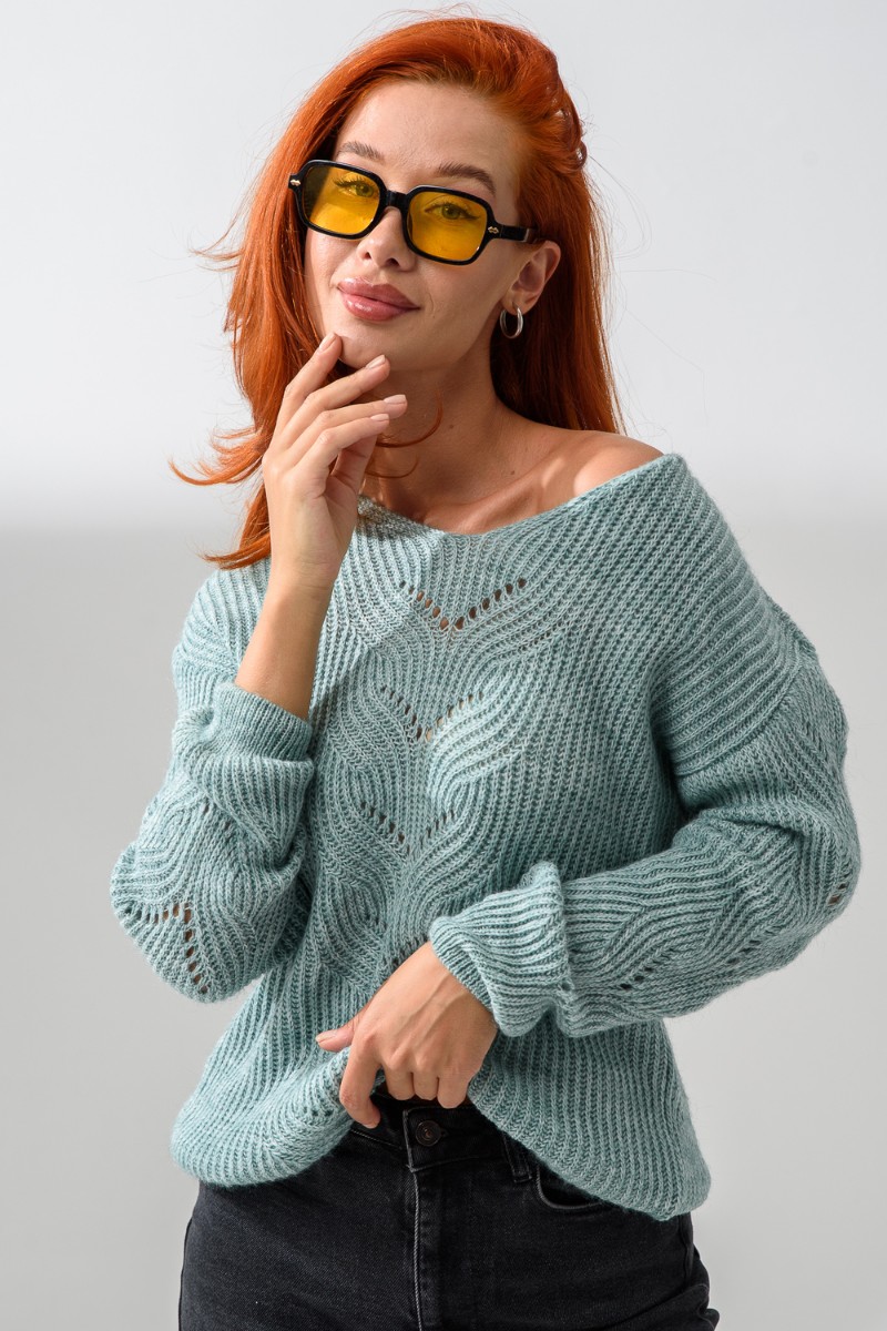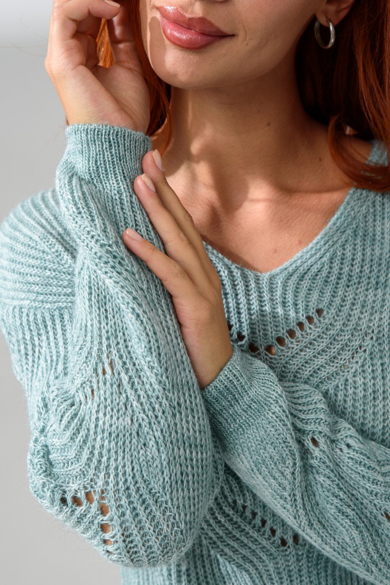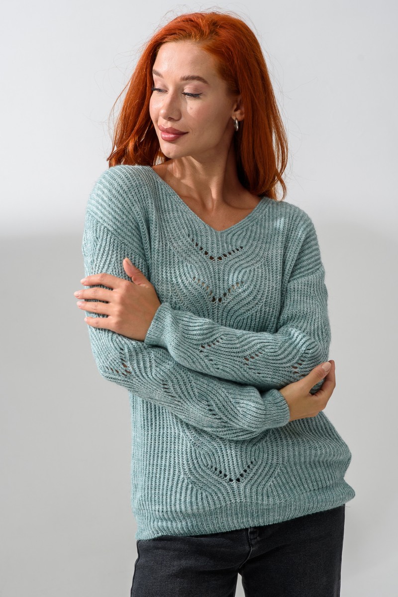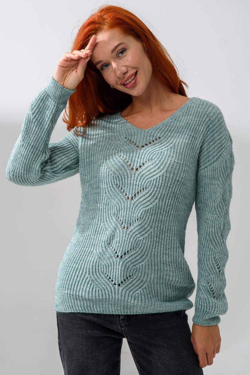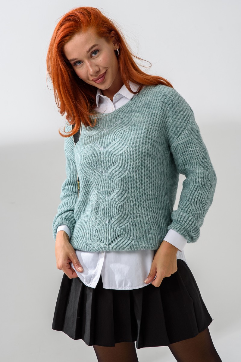 Джемпер женский №84503 вязаный трикотаж (р-ры: 42-64) ментол