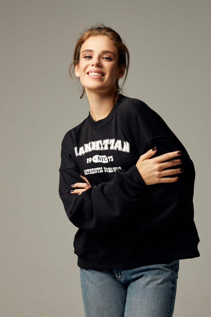 Свитшот женский "MANHATTAN" футер 2-х нитка (р-ры: 40-54) черный
