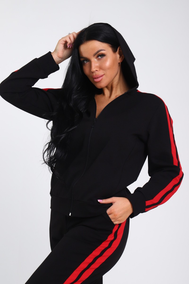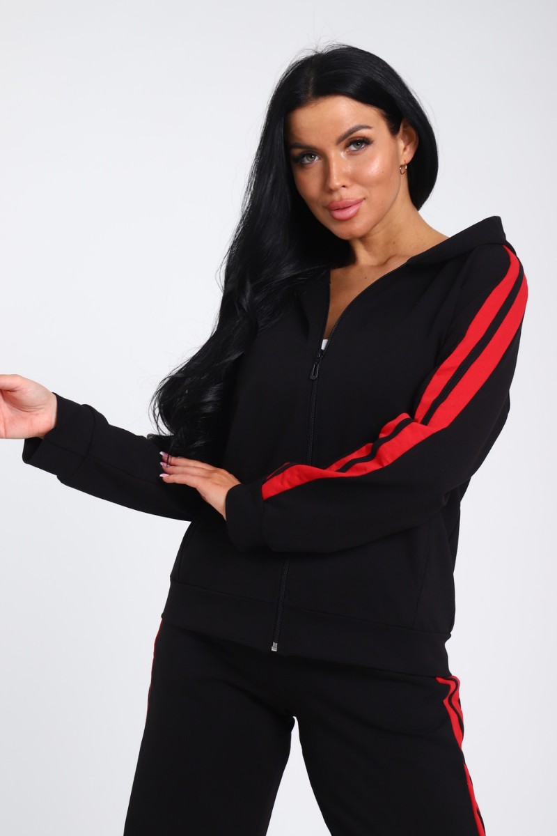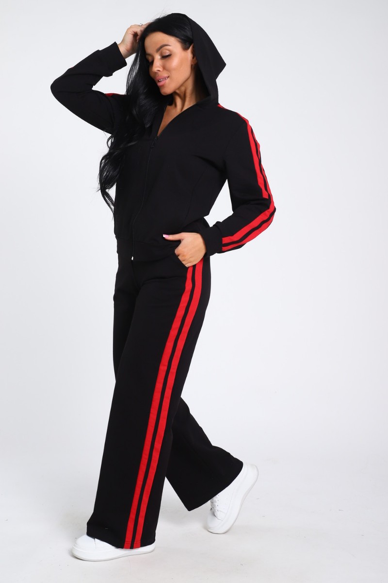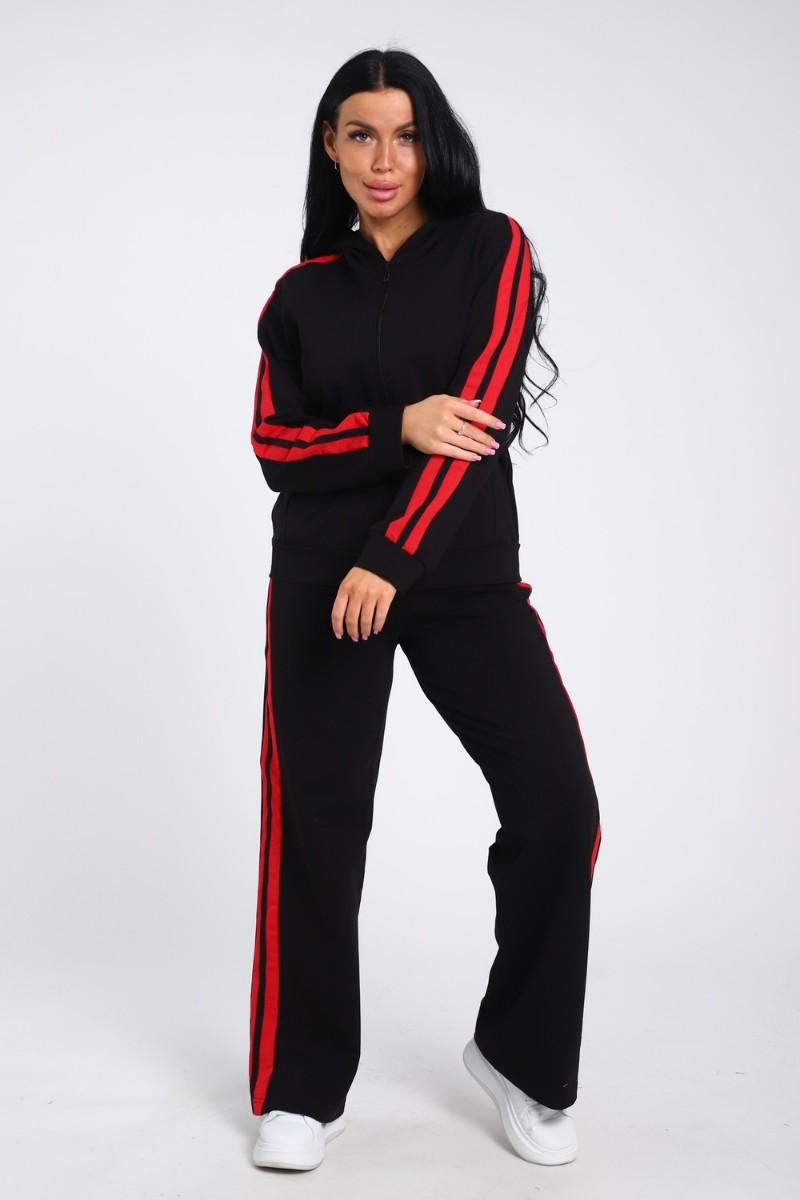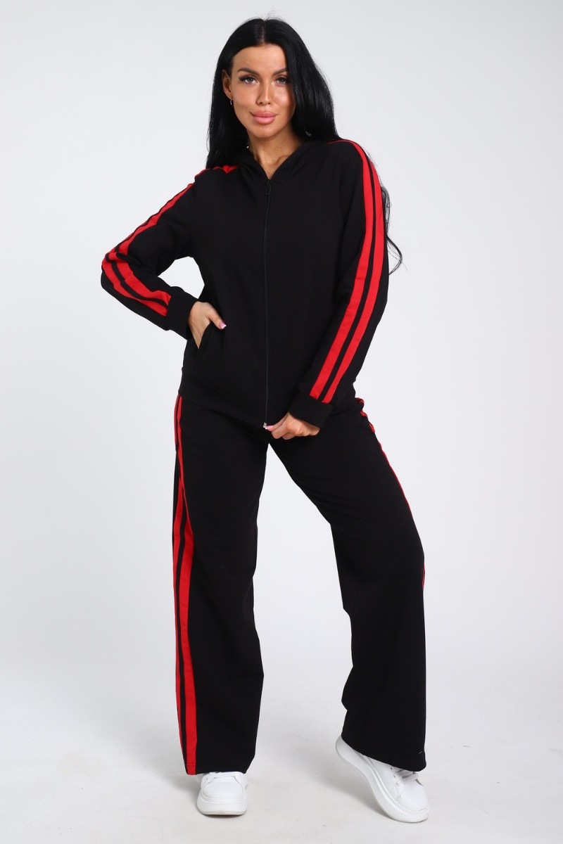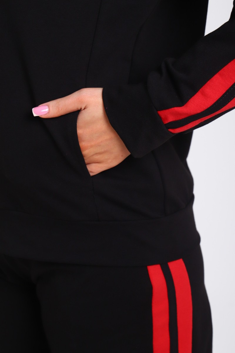 Костюм двойка женский В-113 кулирка-футер (р-ры: 42-64) черно-красный