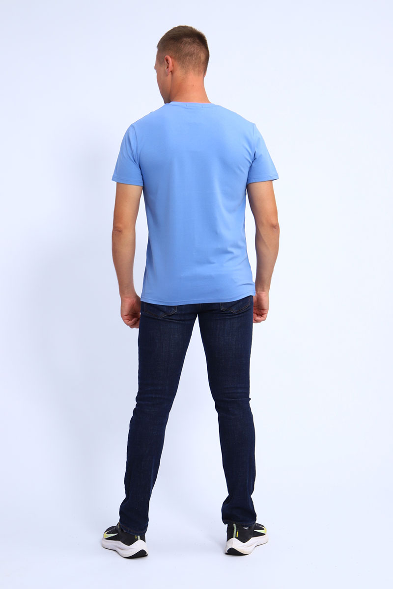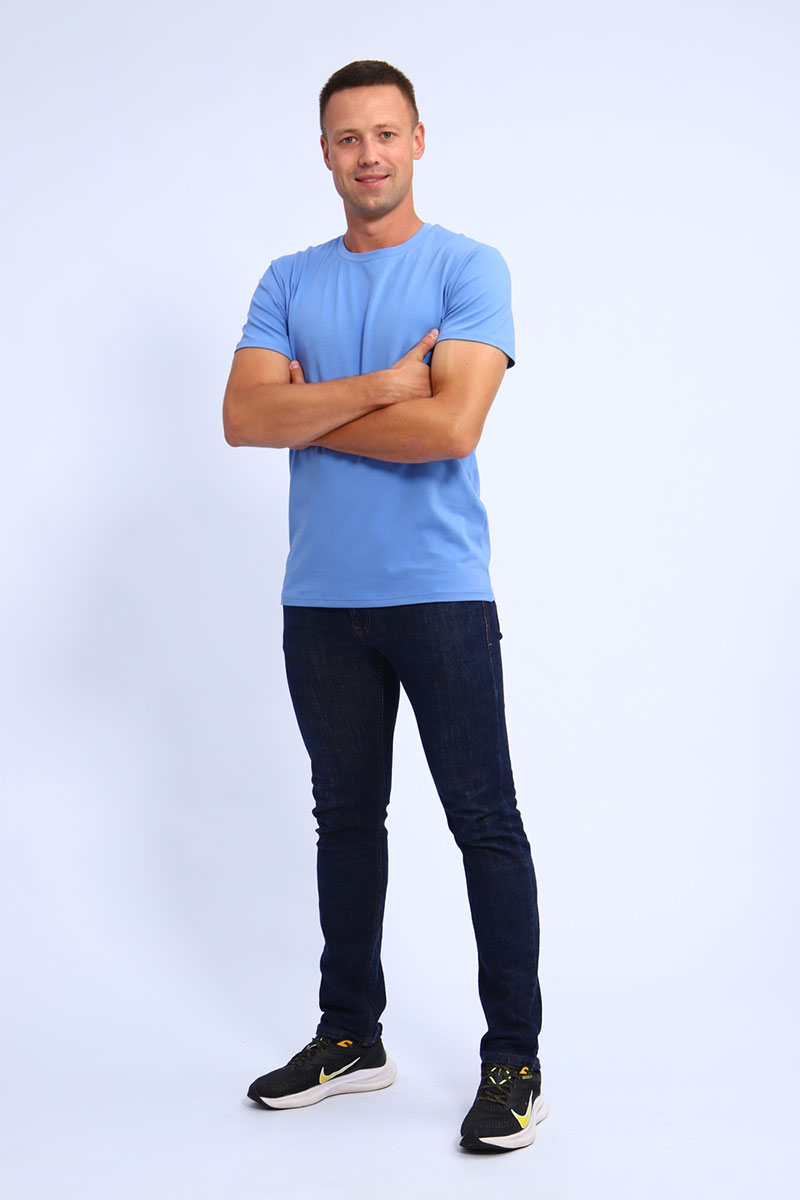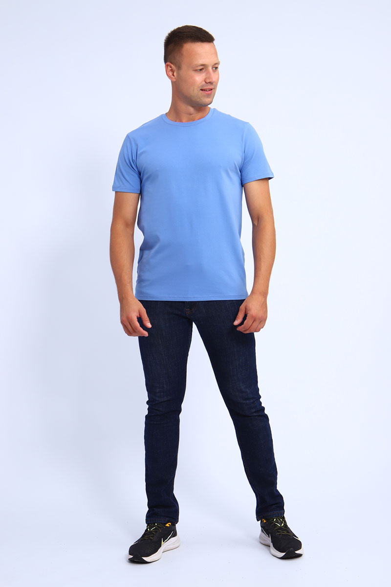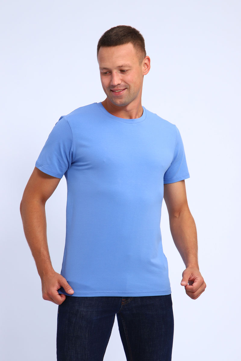 Футболка мужская №019 кулирка с лайкрой пенье (последний размер) голубой XL