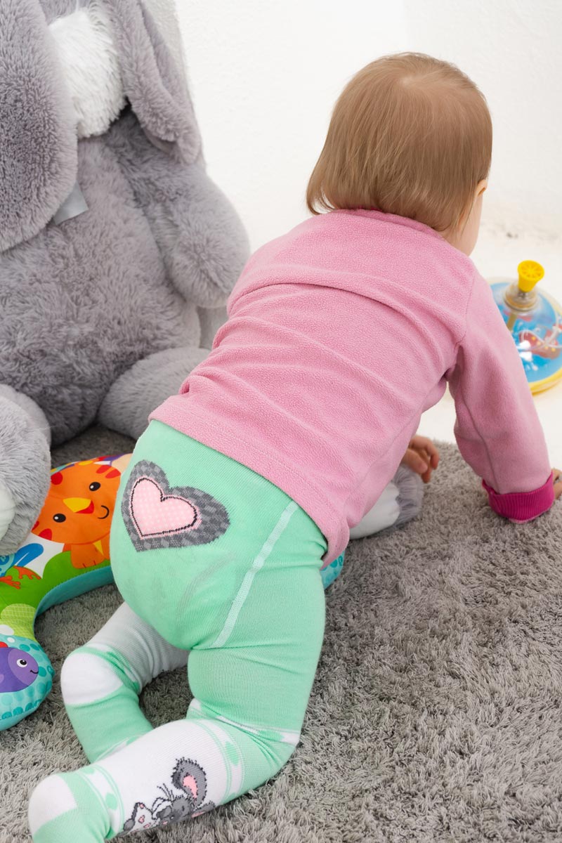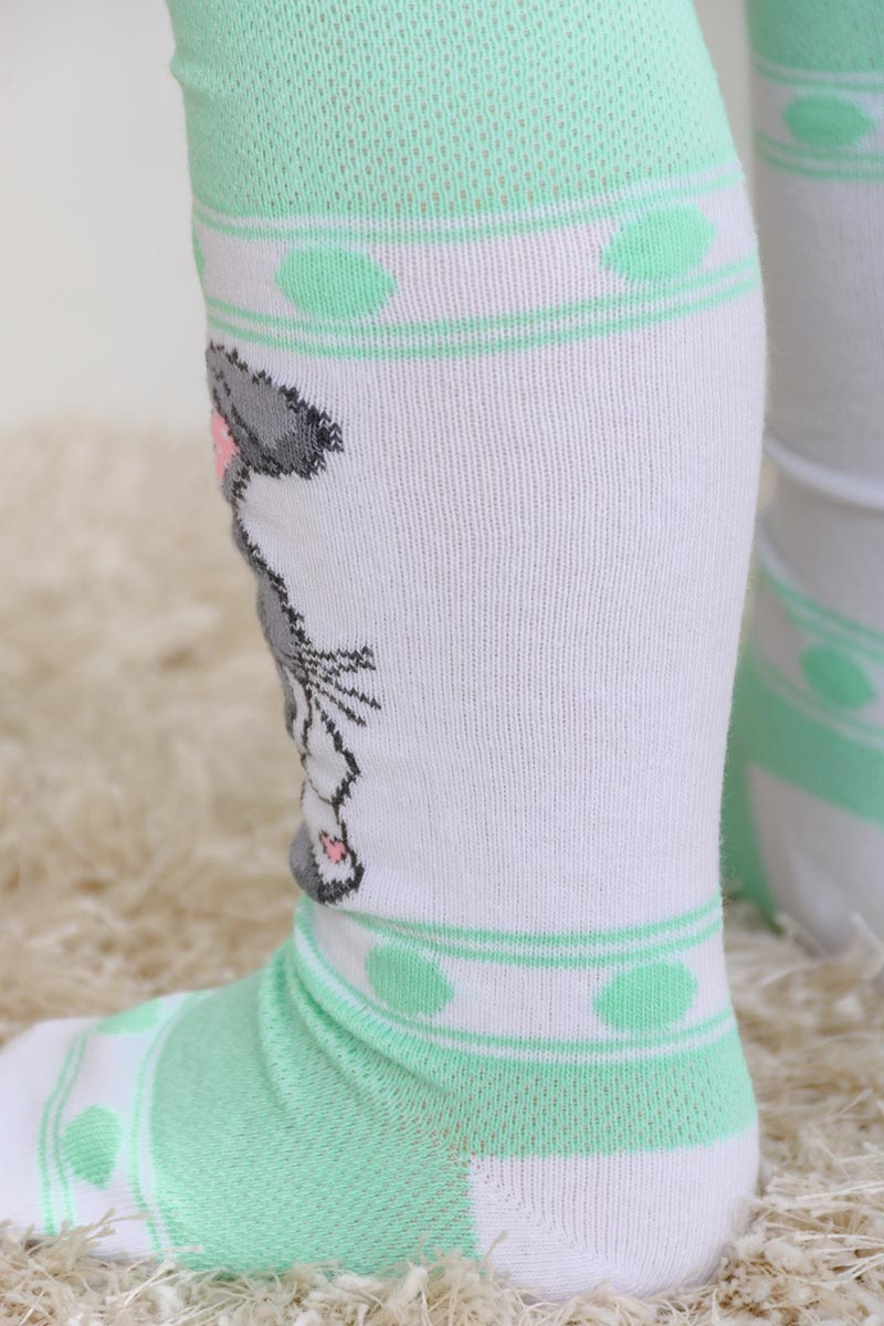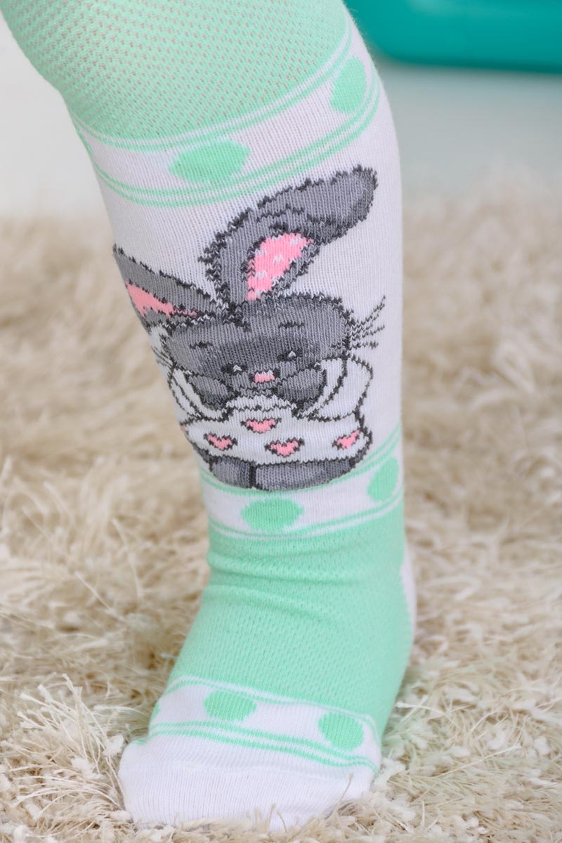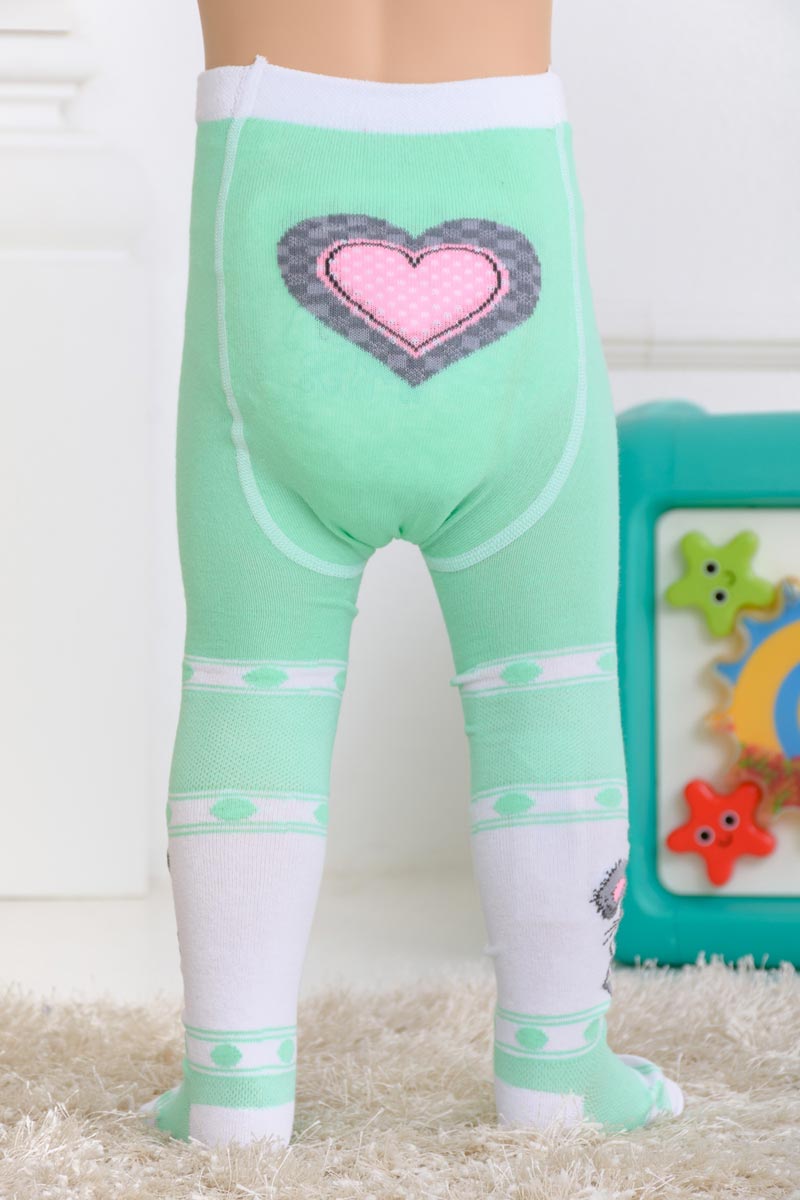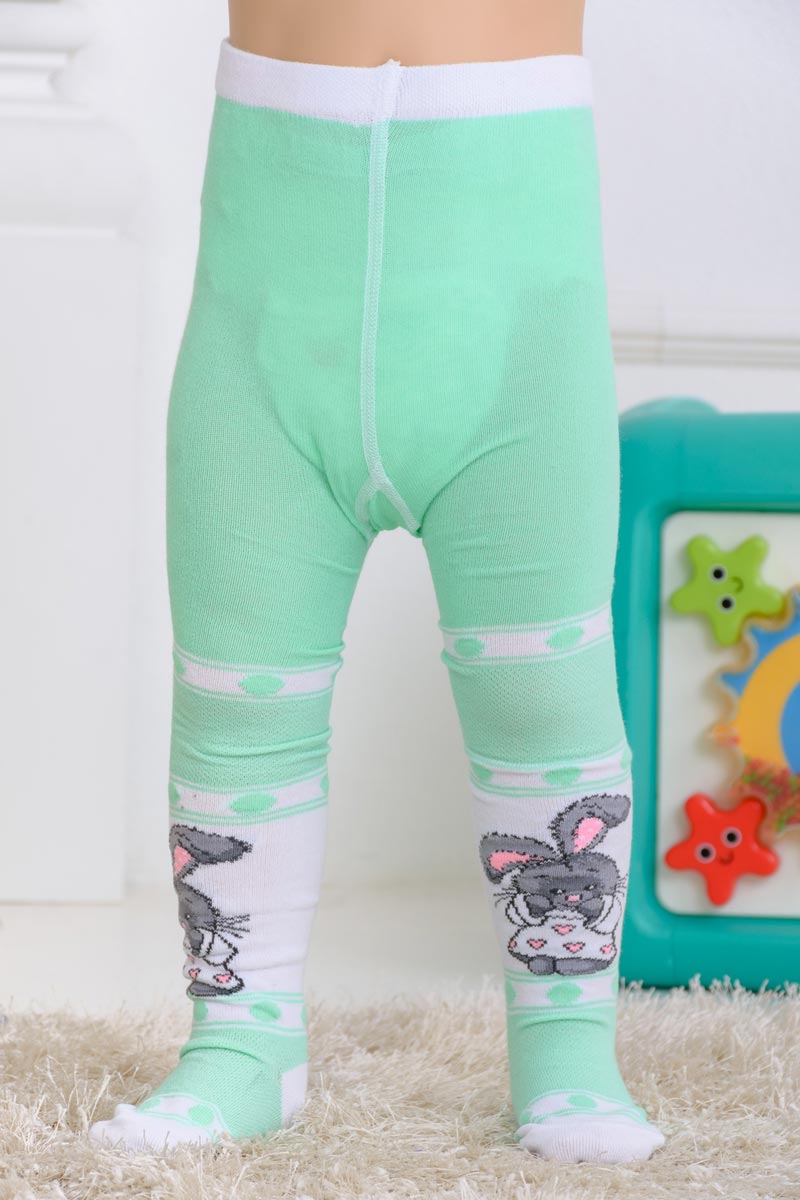 Милые колготки для самых маленьких. Нежные цвета - розовый и салатовый, спереди рисунок - симпатичный зайчик, сзади - сердечко.