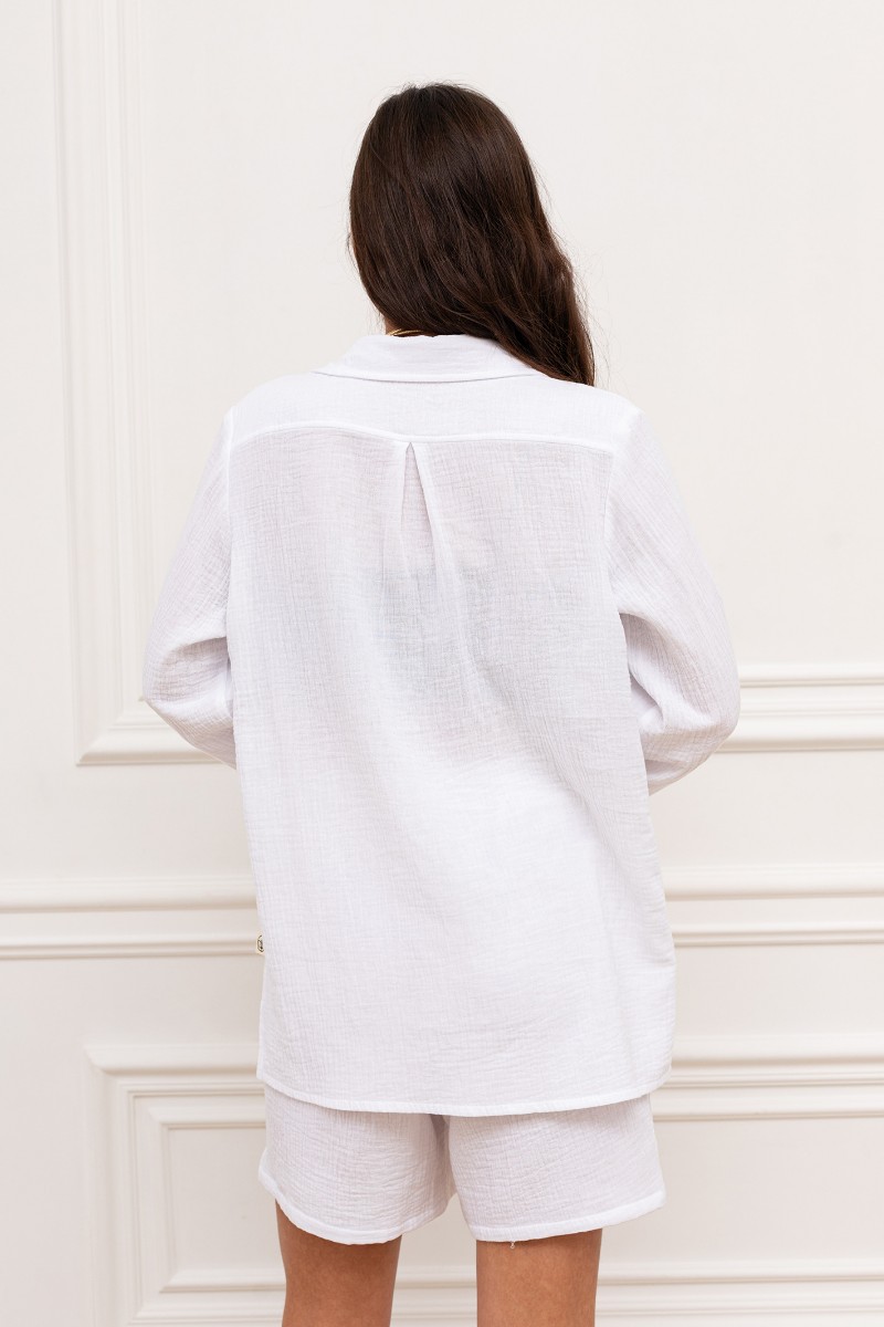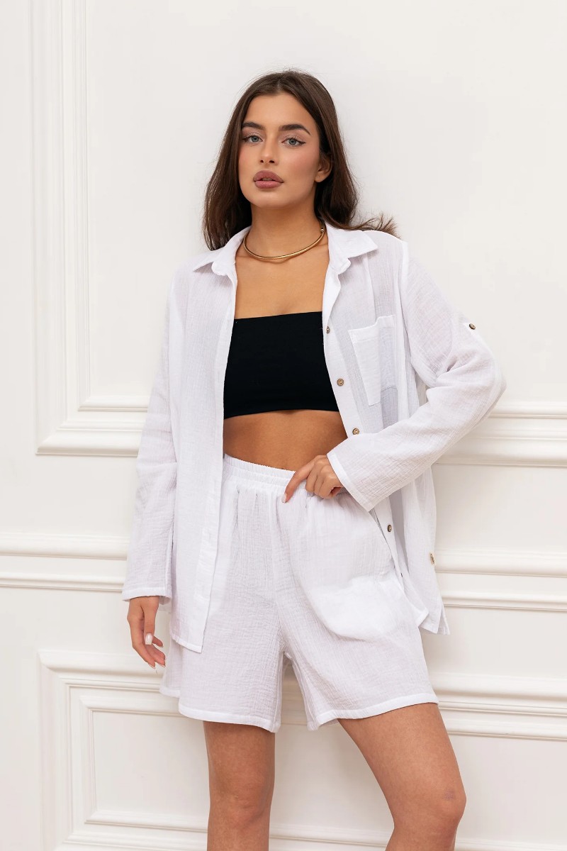 Стильный дуэт – удлиненная рубашка свободного кроя и удобные шорты создают гармоничный образ, подчеркивающий вашу женственность.