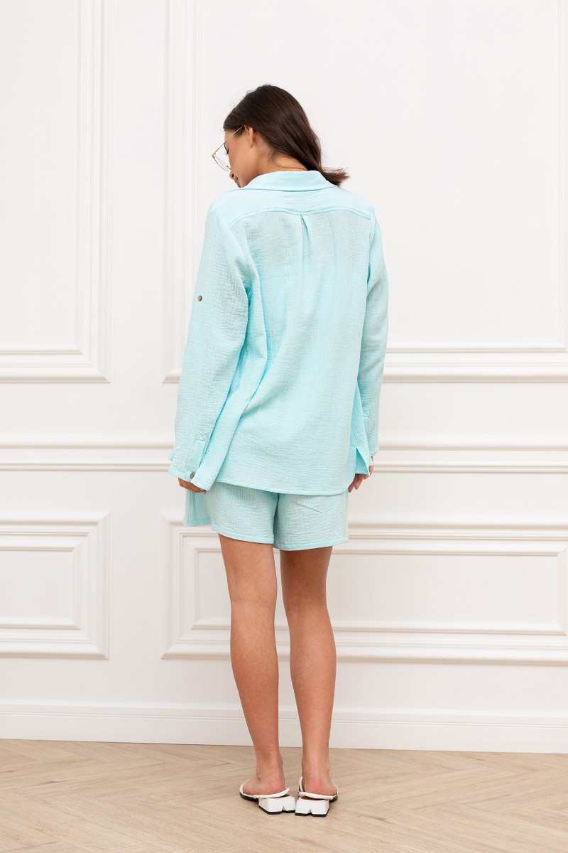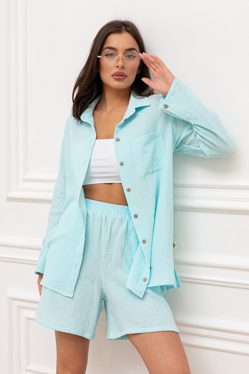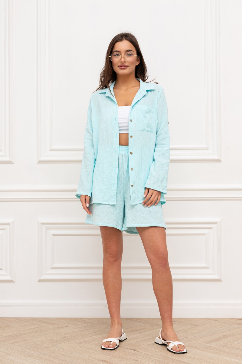 Стильный дуэт – удлиненная рубашка свободного кроя и удобные шорты создают гармоничный образ, подчеркивающий вашу женственность.