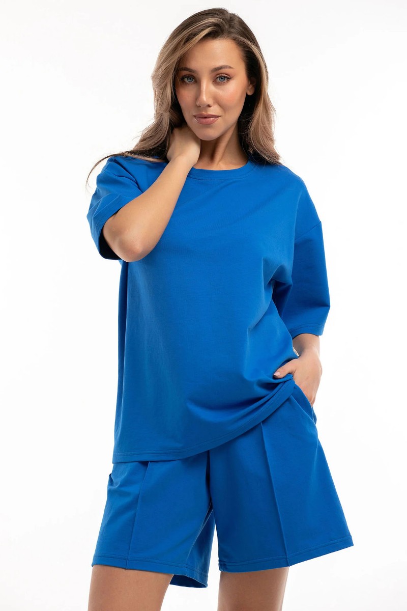 Представляем Вашему вниманию женский костюм с шортами - идеальный выбор для летнего сезона. Он сочетает в себе комфорт и стиль, позволяя выглядеть модно и чувствовать себя уютно. Такой женский костюм станет отличным выбором для прогулок. отдыха на пляже или даже домашней одежды.