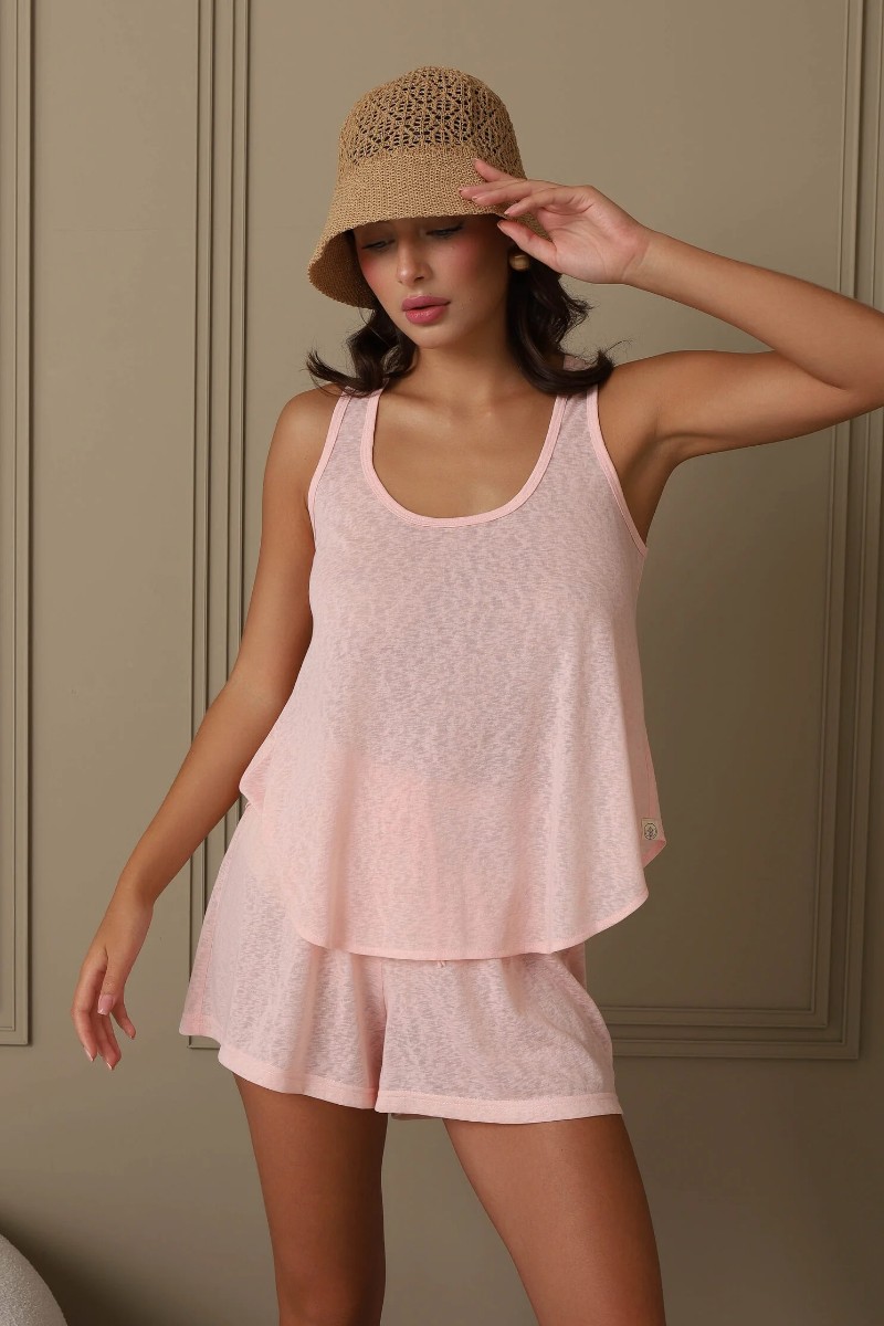 Представляем Вашему вниманию идеальный набор для комфортного отдыха дома, прогулок в теплую погоду или расслабляющего сна. Комплект включает майку на бретелях и удобные шорты, выполненные из мягкой и дышащей ткани.
