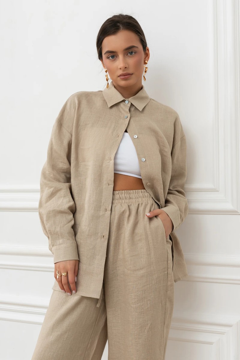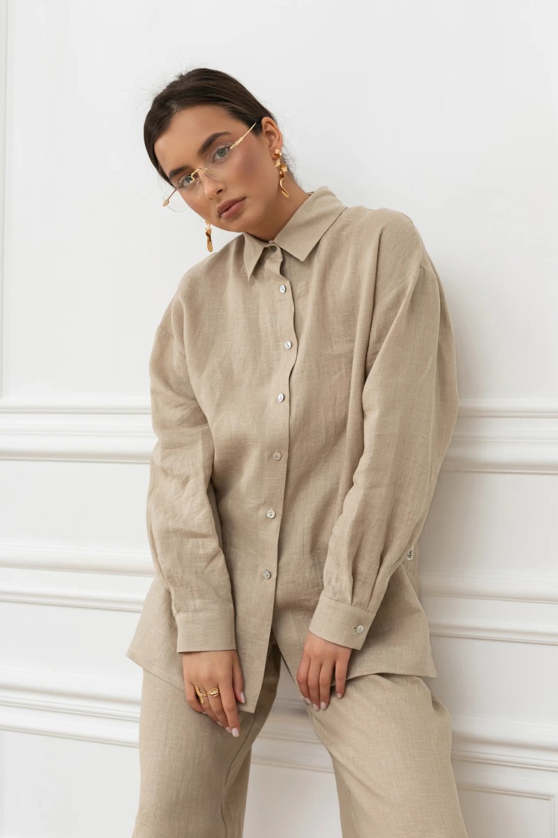 Рубашка женская "Лён" М-3РЖ-5 лён (р-ры: 42-52) бежевый