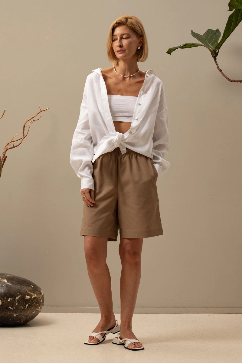Представляем Вашему вниманию летние шорты для женщин изо льна - это классический вариант летнего гардероба. Короткие шорты оверсайз свободного кроя обеспечат стильный и современный образ на морском отдыхе или во время летних прогулок и пикников. Лён создает эффект легкости и обеспечивает комфорт и свободу движений.