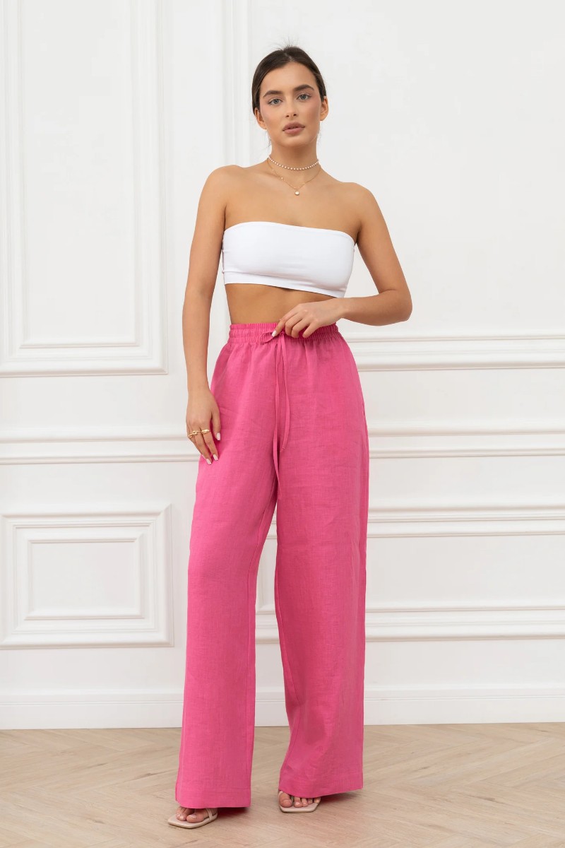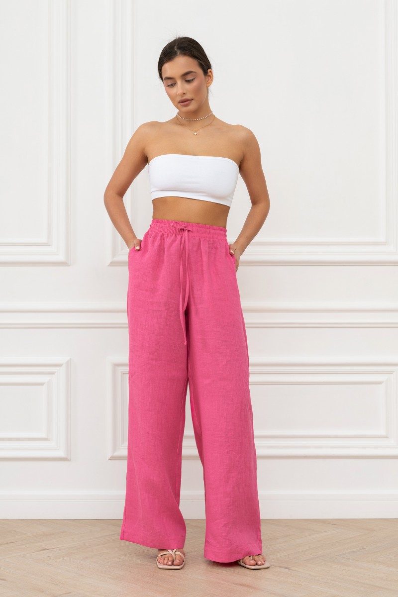 Брюки женские "Лён" М-9БРЖ лён (р-ры: 42-56) фуксия