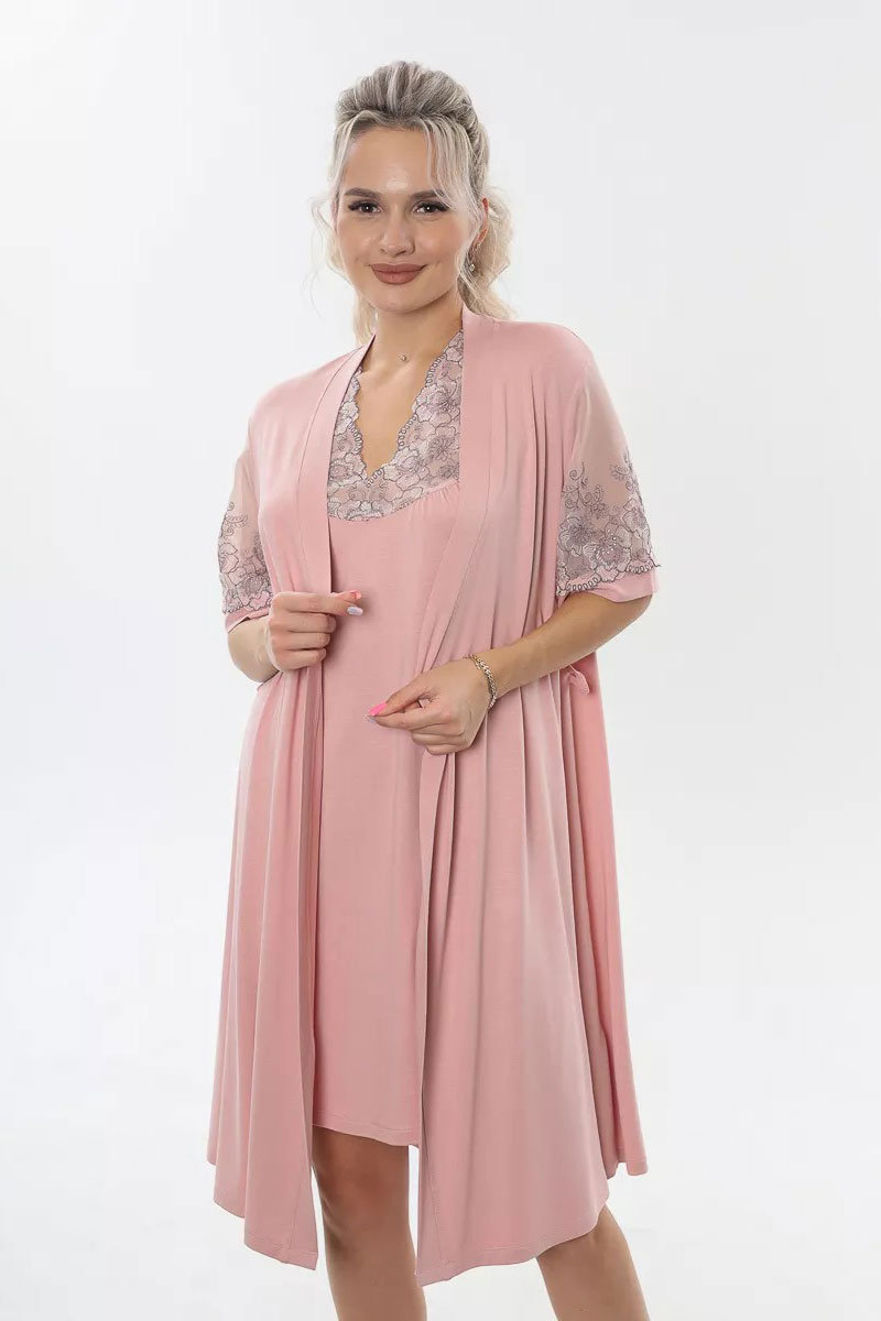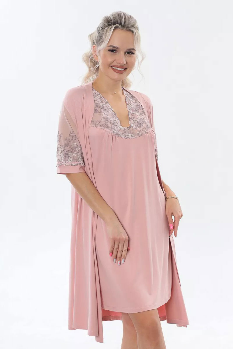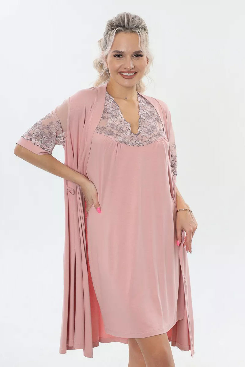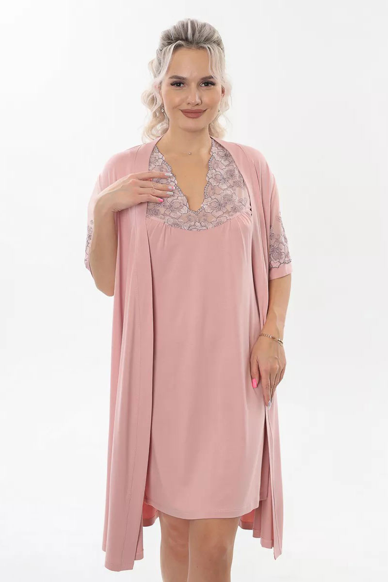 Пеньюар двойка женский "Каролина" вискоза с кружевом (р-ры: 46-60) розовый