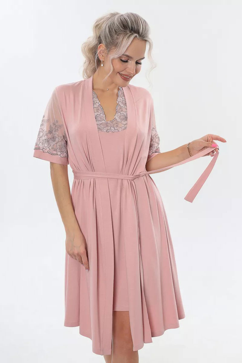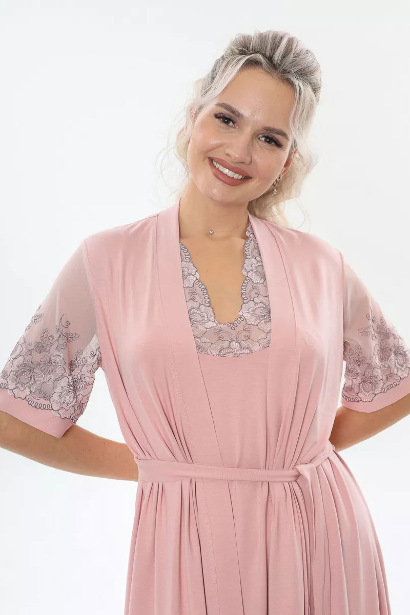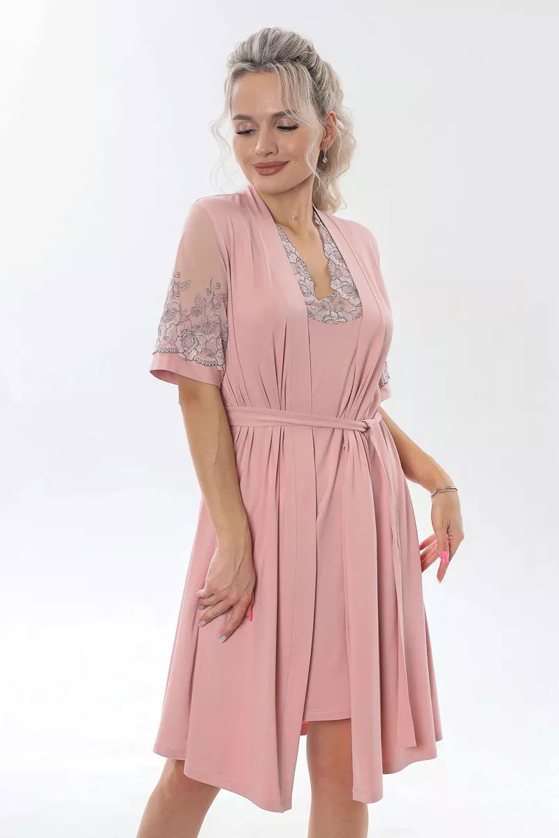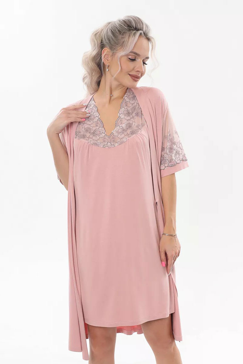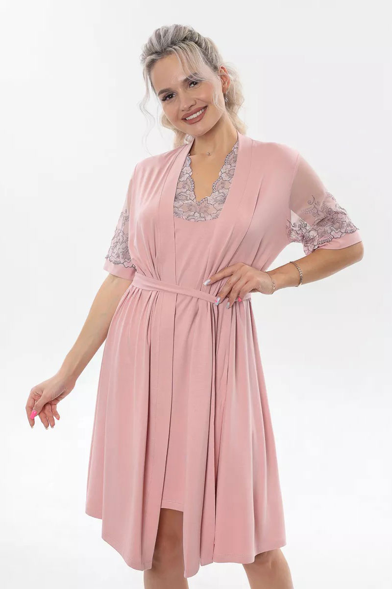 Пеньюар двойка женский "Каролина" вискоза с кружевом (р-ры: 46-60) розовый