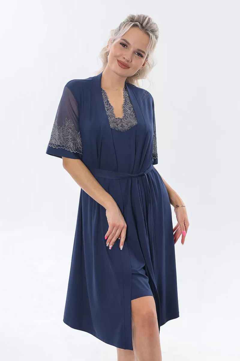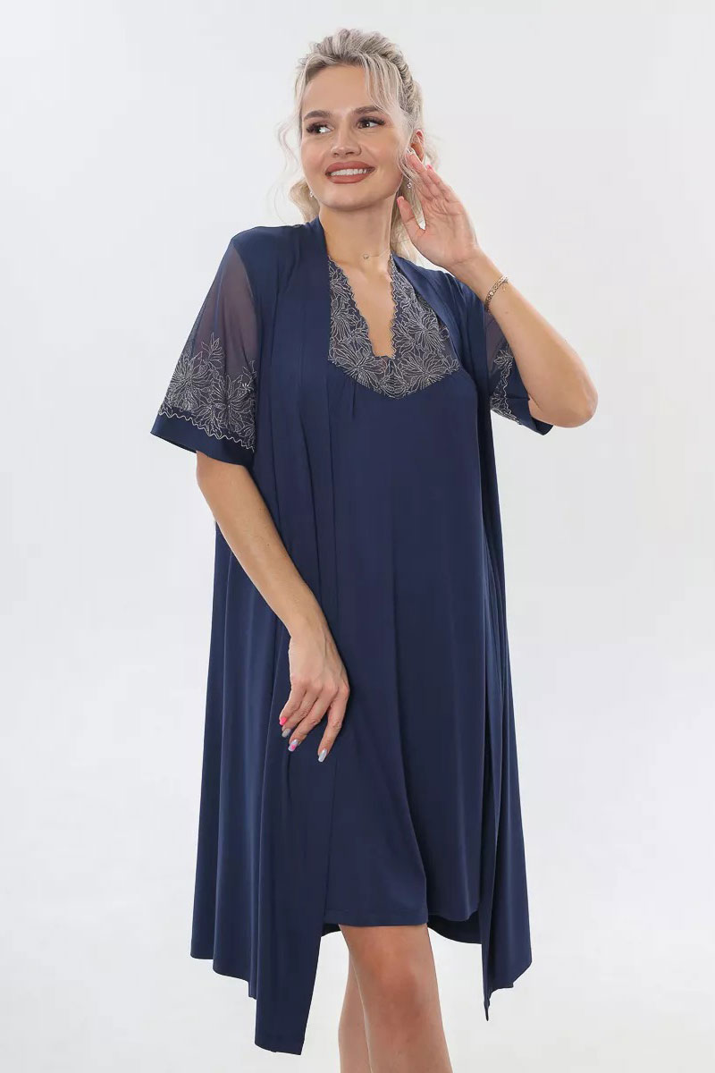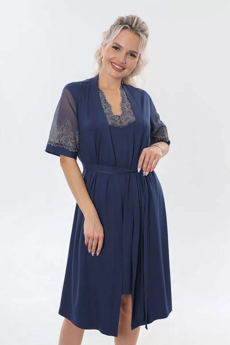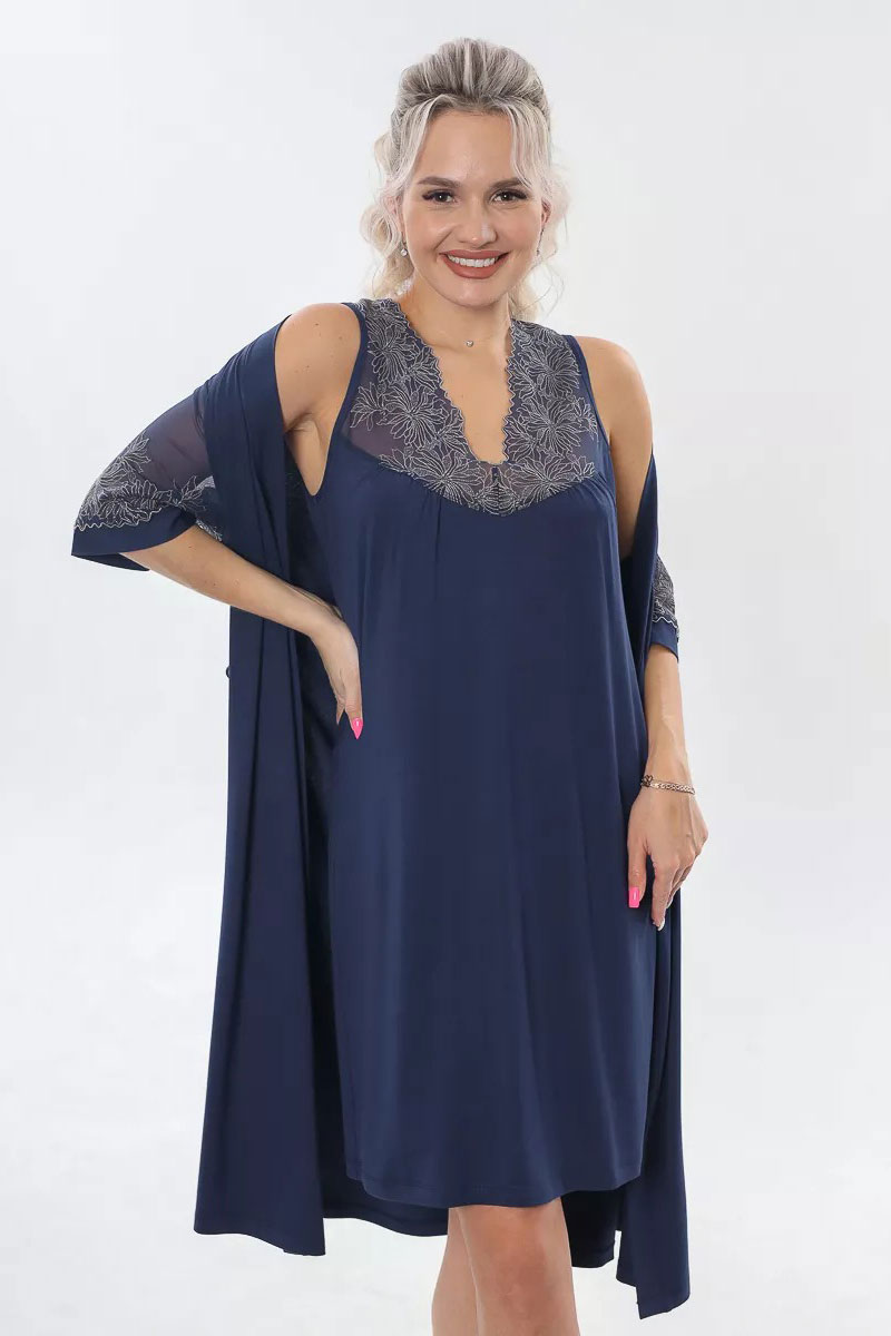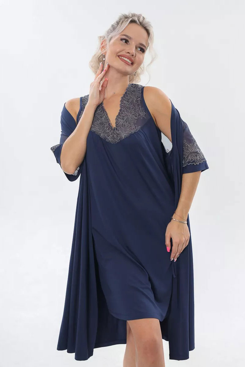 Пеньюар двойка женский "Каролина" вискоза с кружевом (р-ры: 46-60) синий