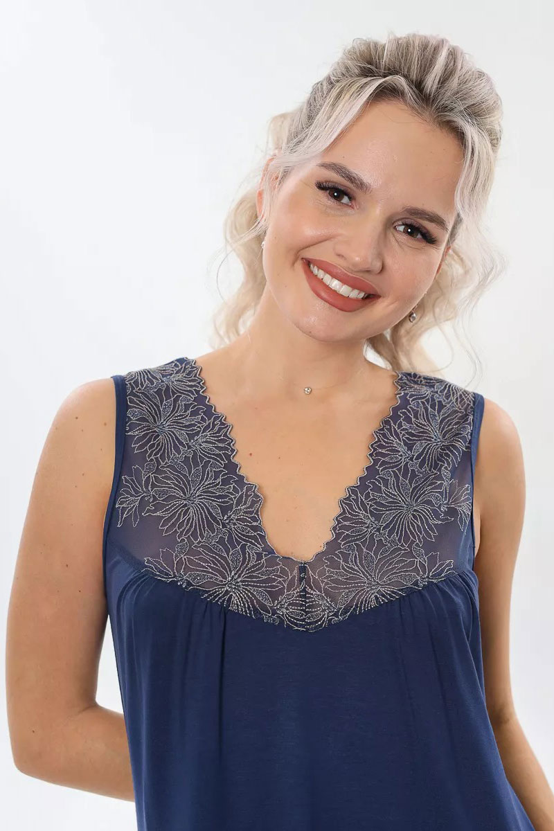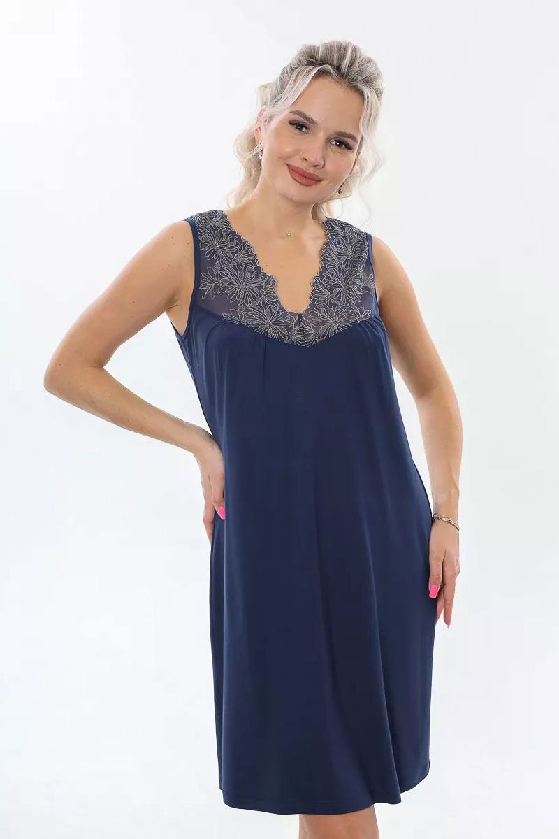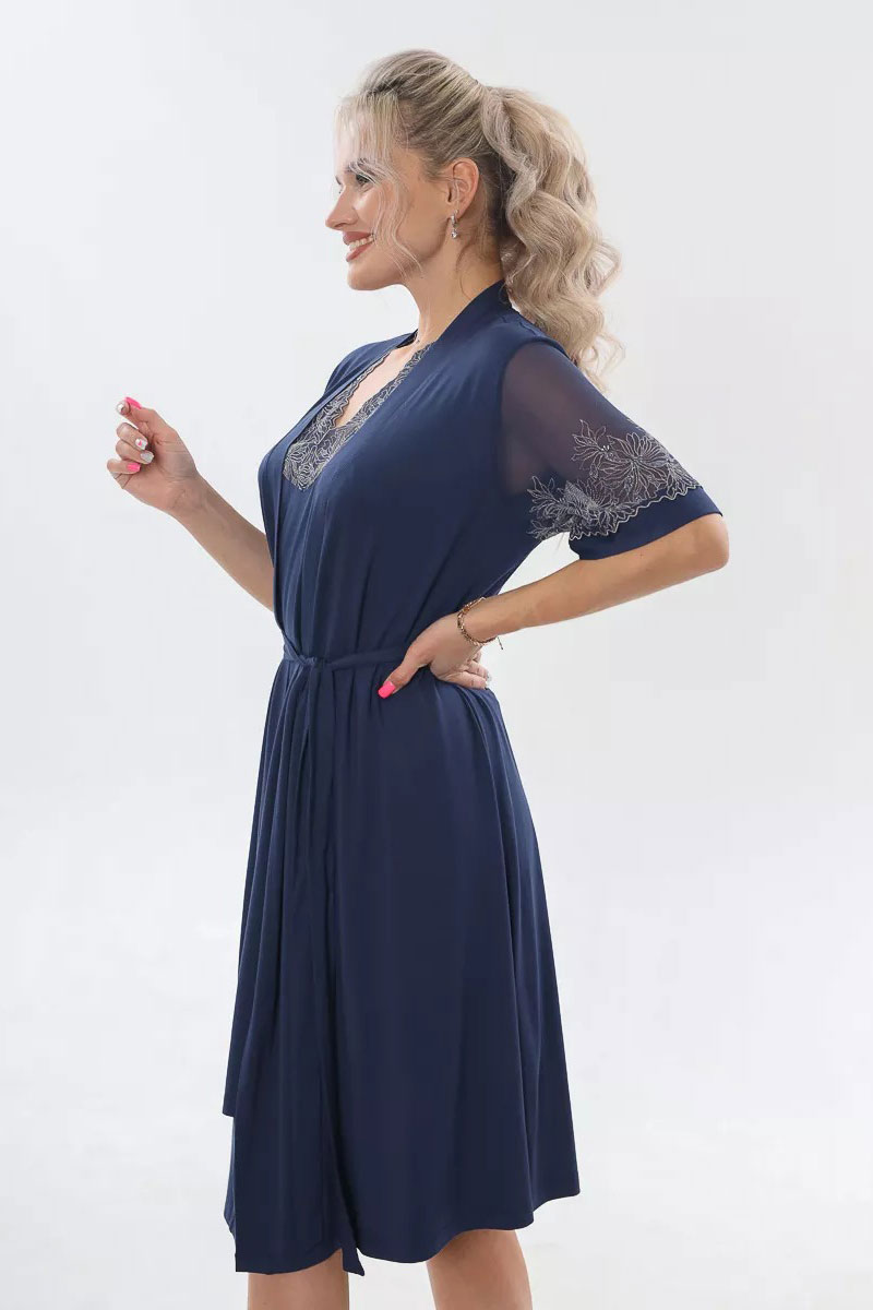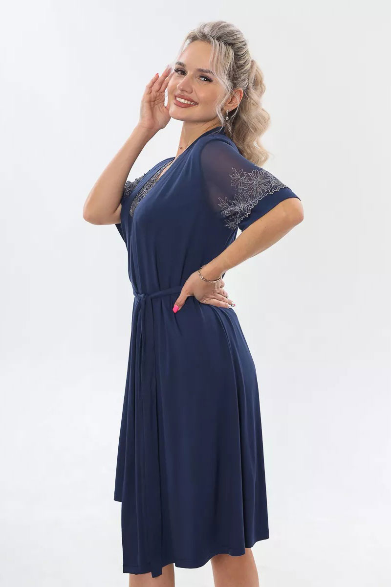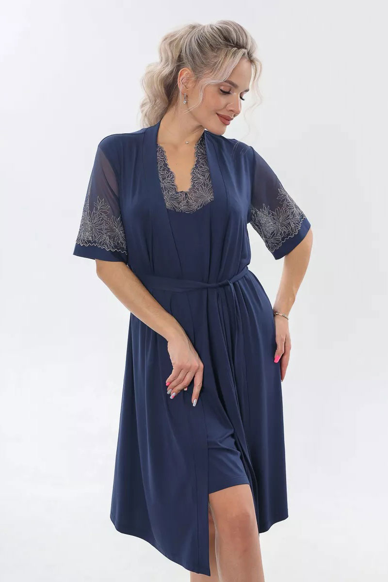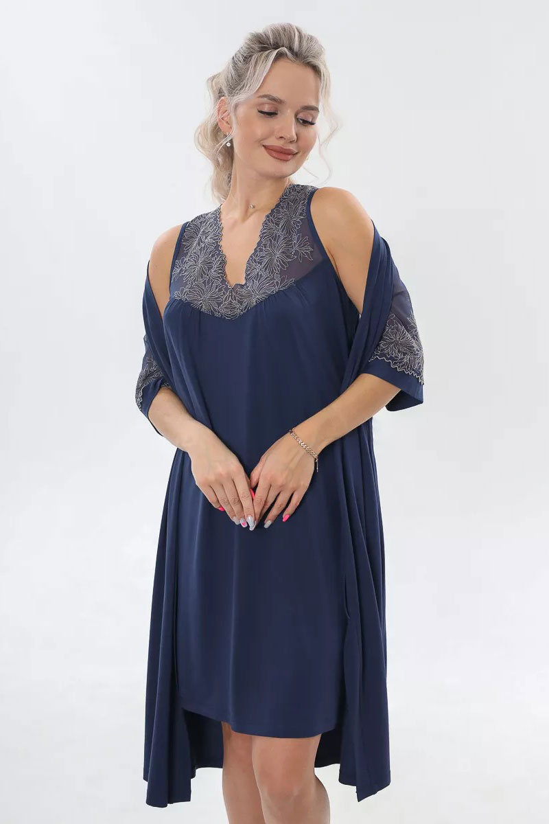Пеньюар двойка женский "Каролина" вискоза с кружевом (р-ры: 46-60) синий