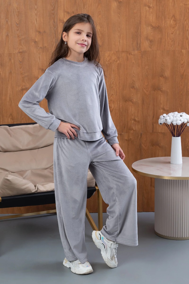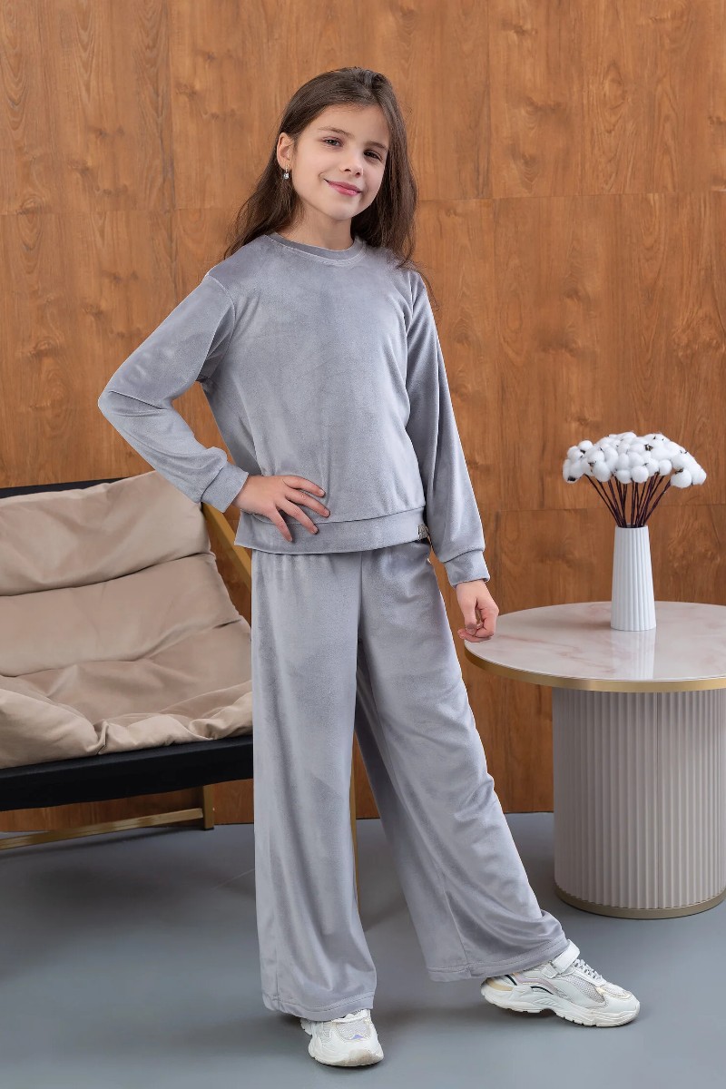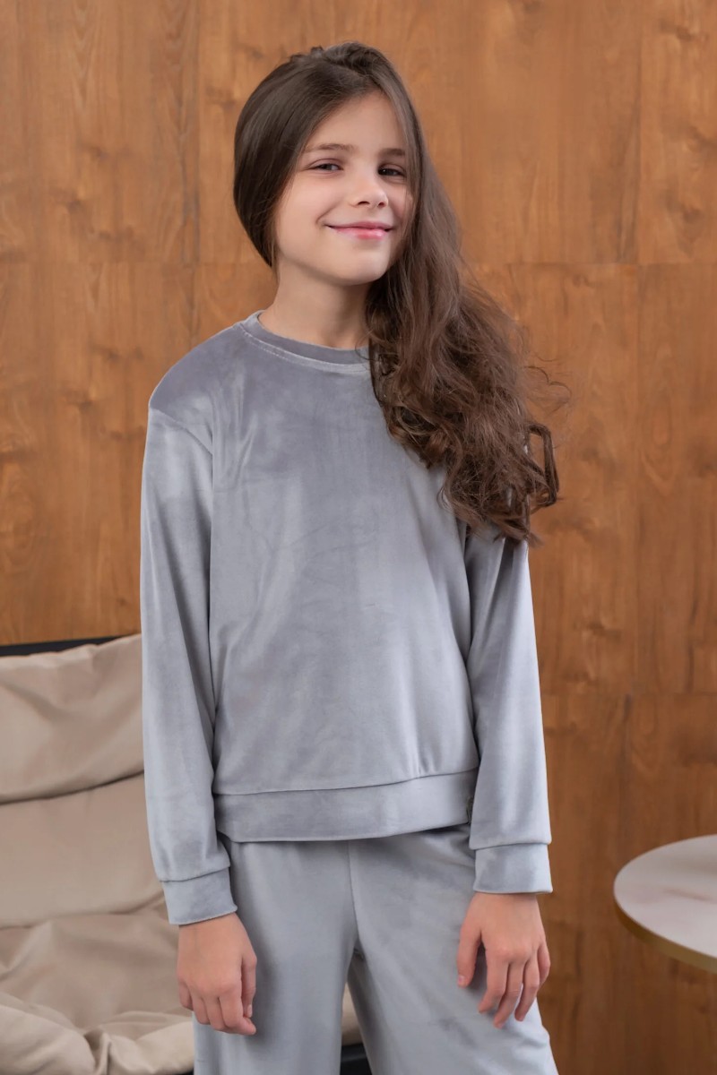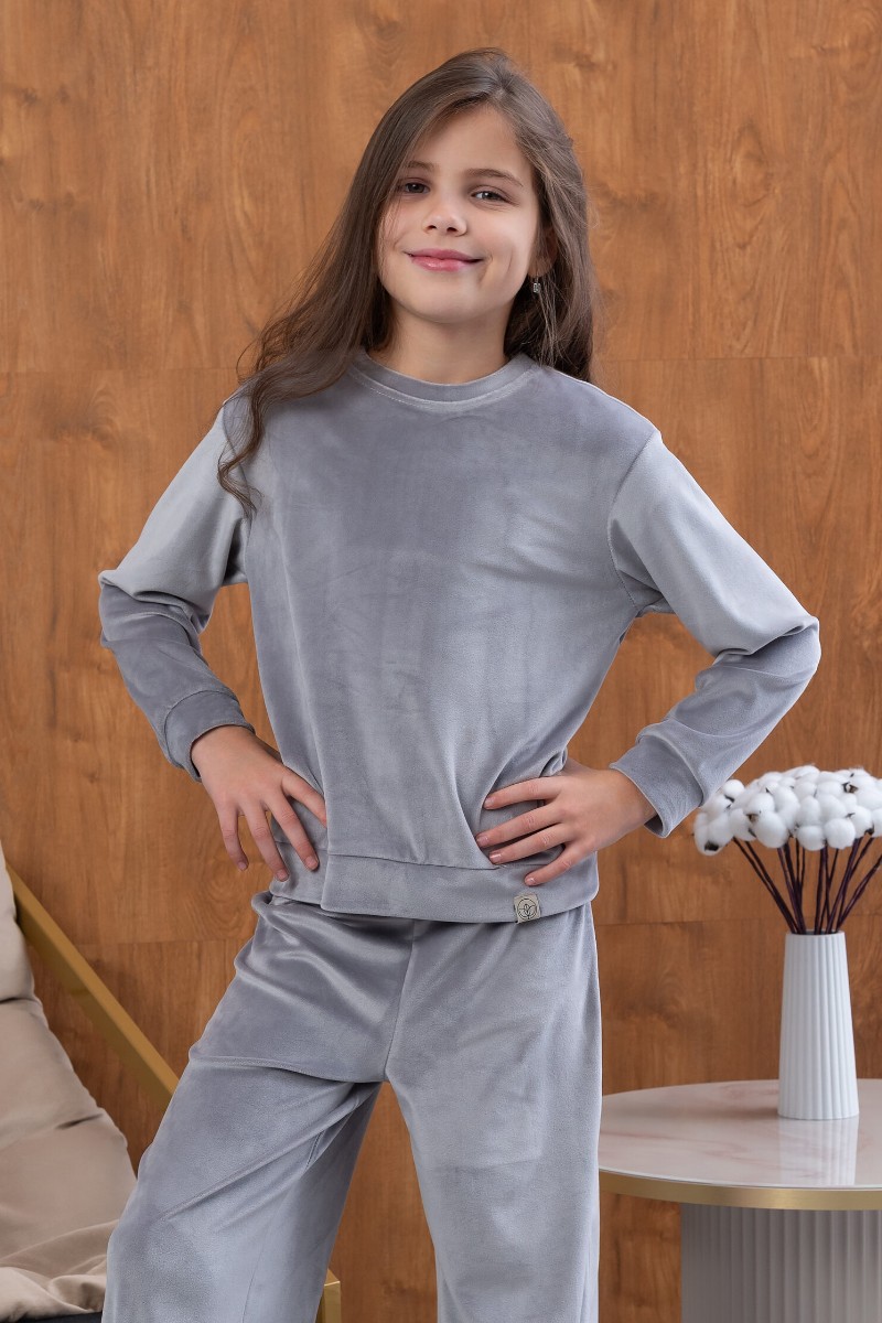 Костюм двойка детский "Боня" М-07КД велюр (р-ры: 34-42) серый