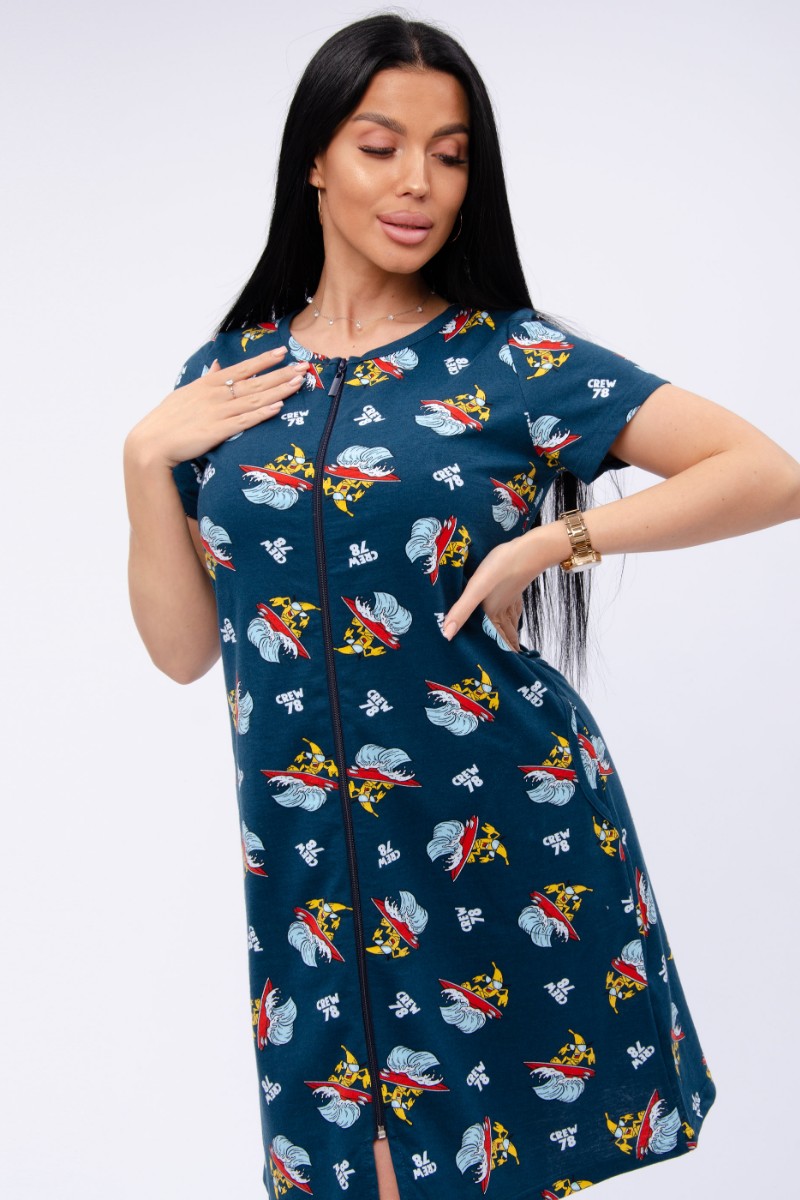 Представляем Вашему вниманию легкий женский халат, сшитый из натуральной, приятной телу кулирки - 100% хлопок, позволяющий коже дышать. Расцветка изделия красиво смотрится и поднимает настроение. В нём Вы будете чувствовать себя комфортно и уверенно.