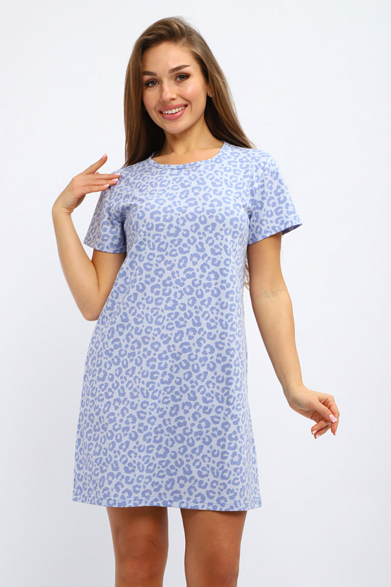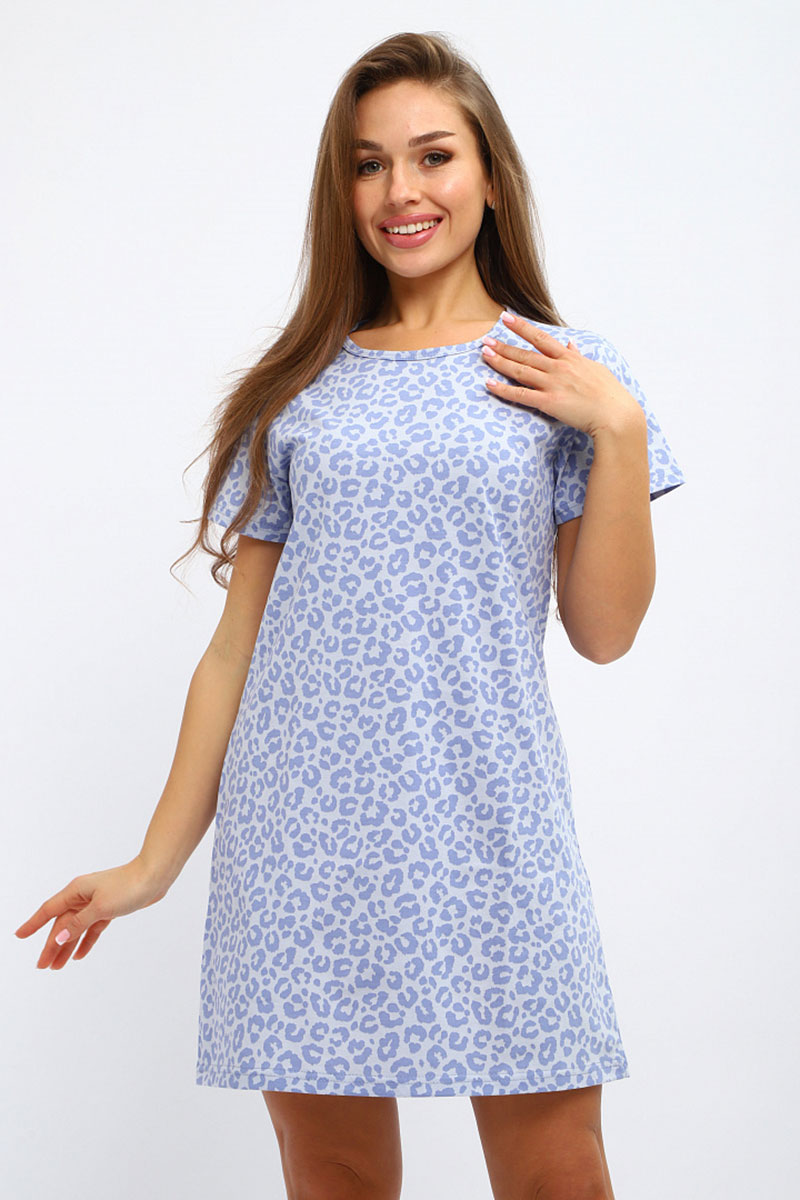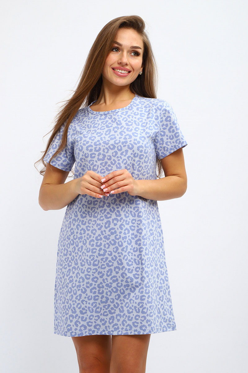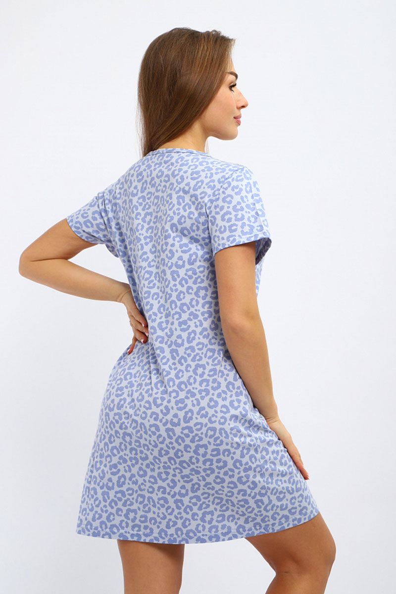 Туника женская №231.3 кулирка (р-ры: 44-58) леопард голубой