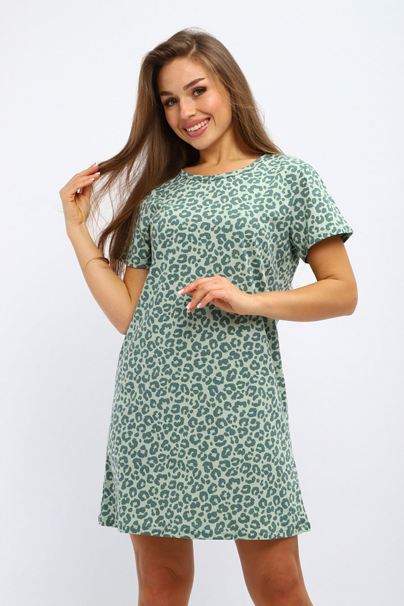 Туника женская №231.2 кулирка (р-ры: 44-58) леопард зеленый