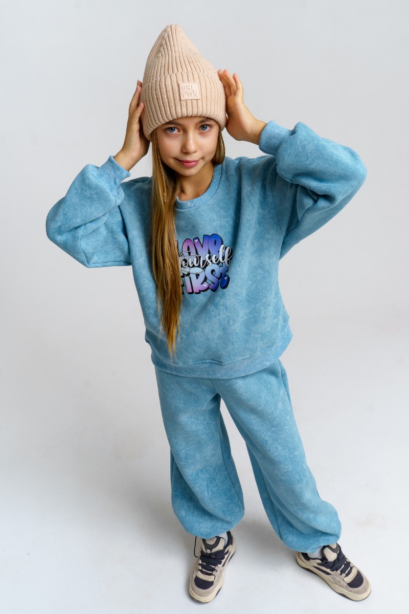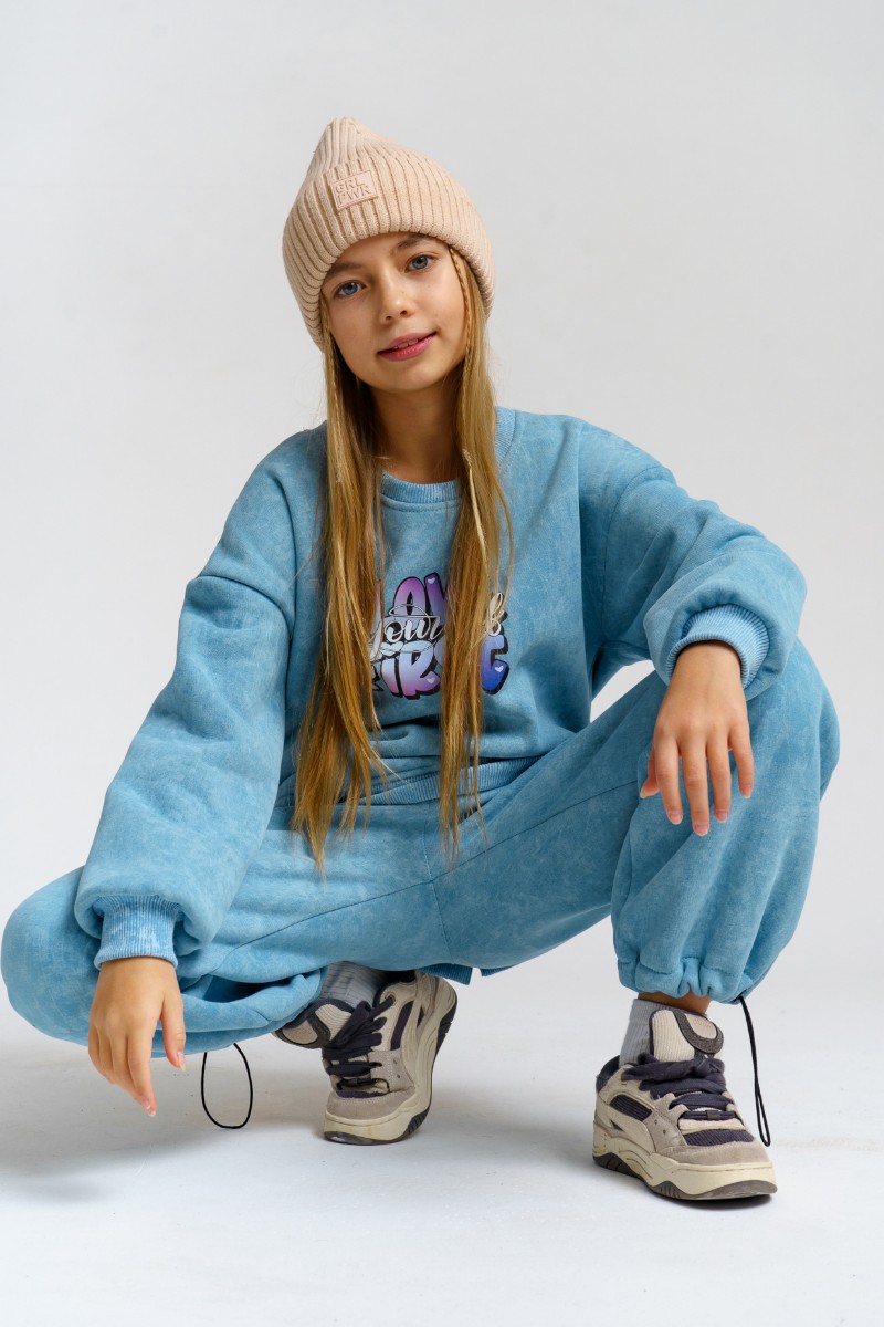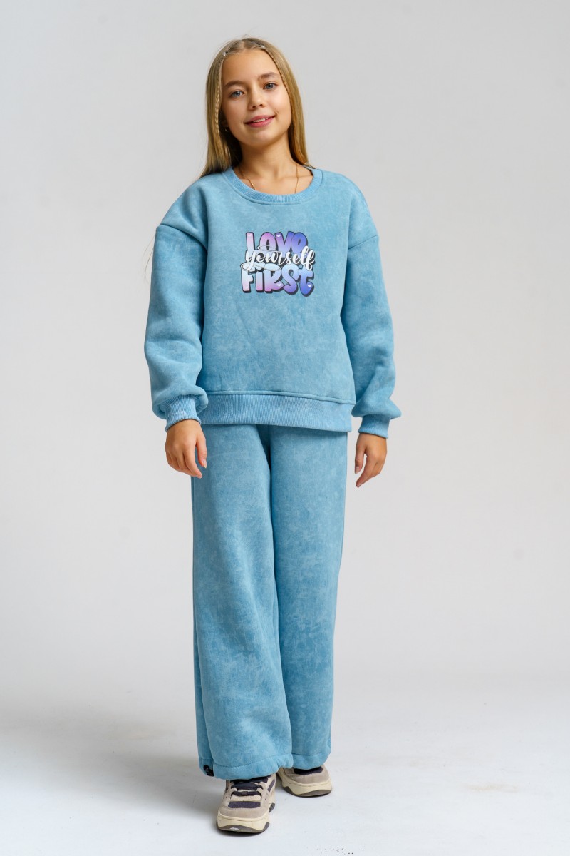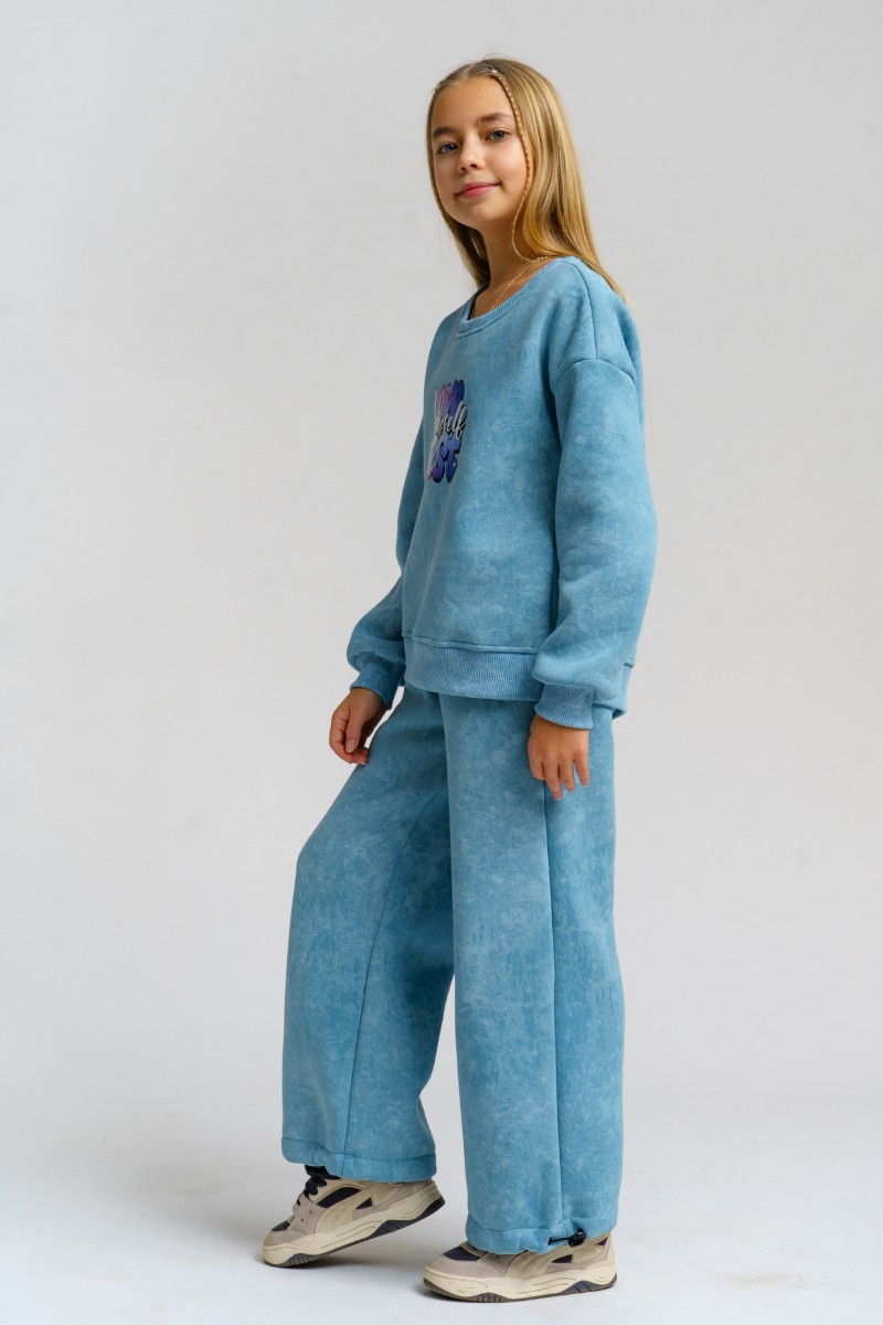 Костюм двойка детский 983Д футер 3-х нитка с начёсом пенье (р-ры: 28-44) голубой винтаж