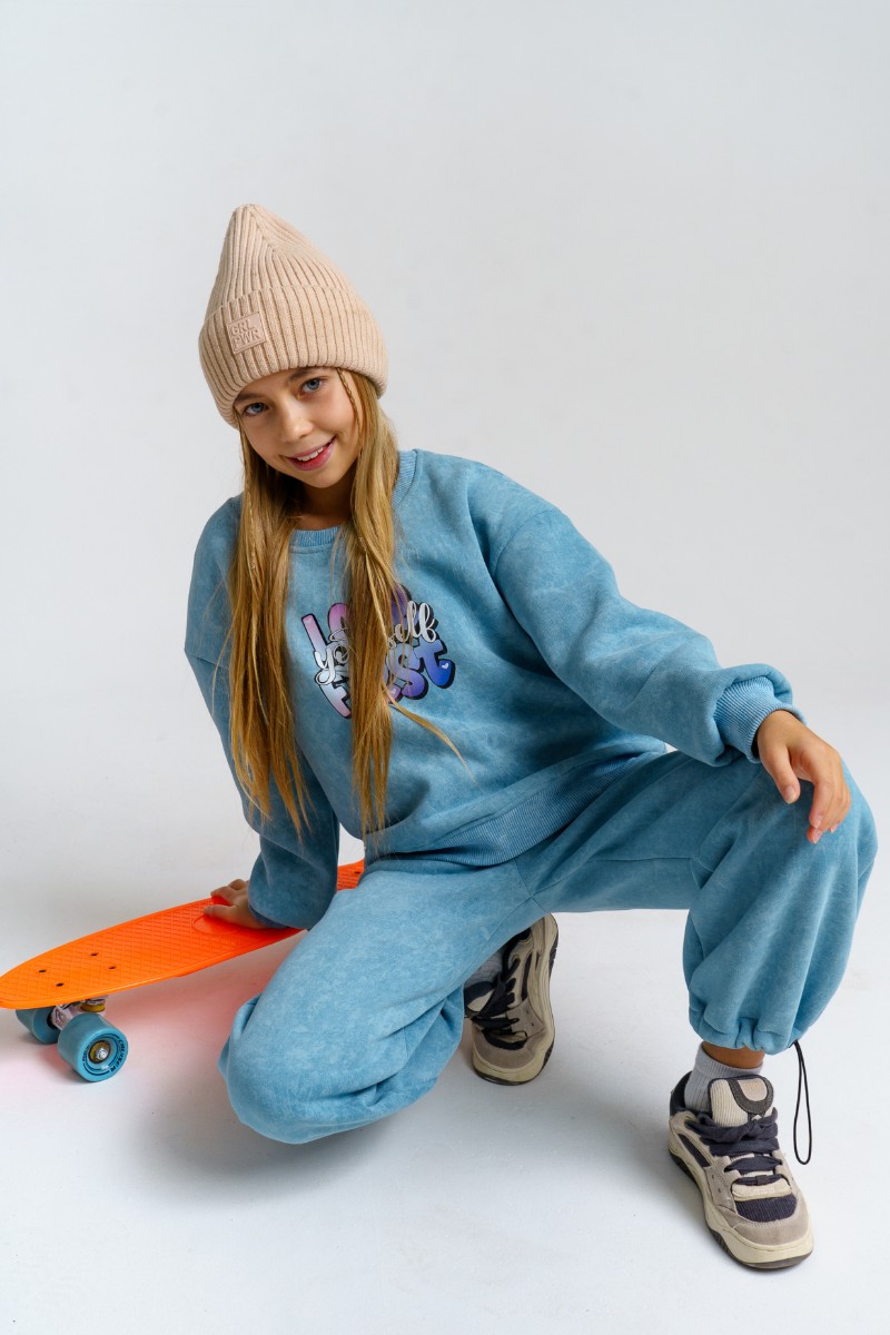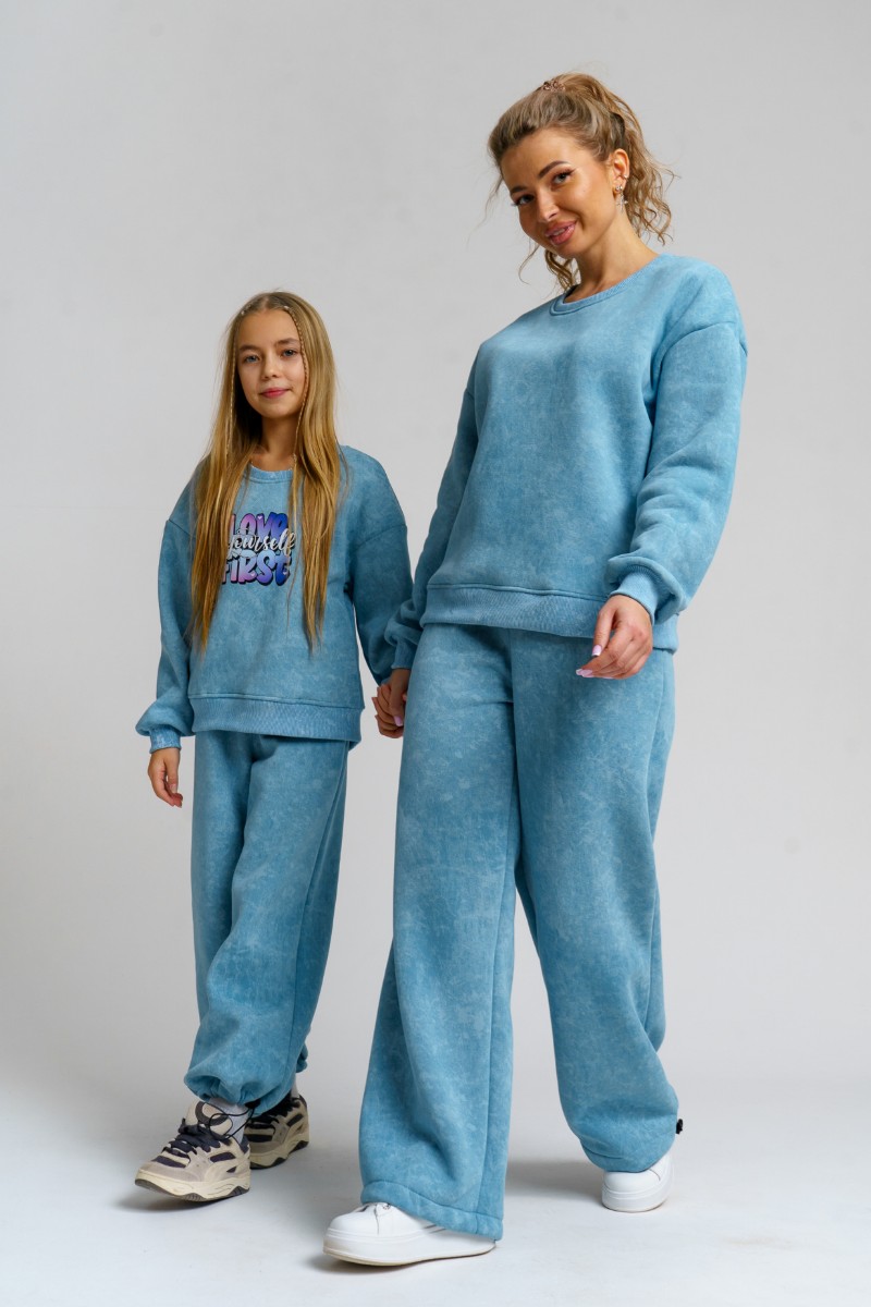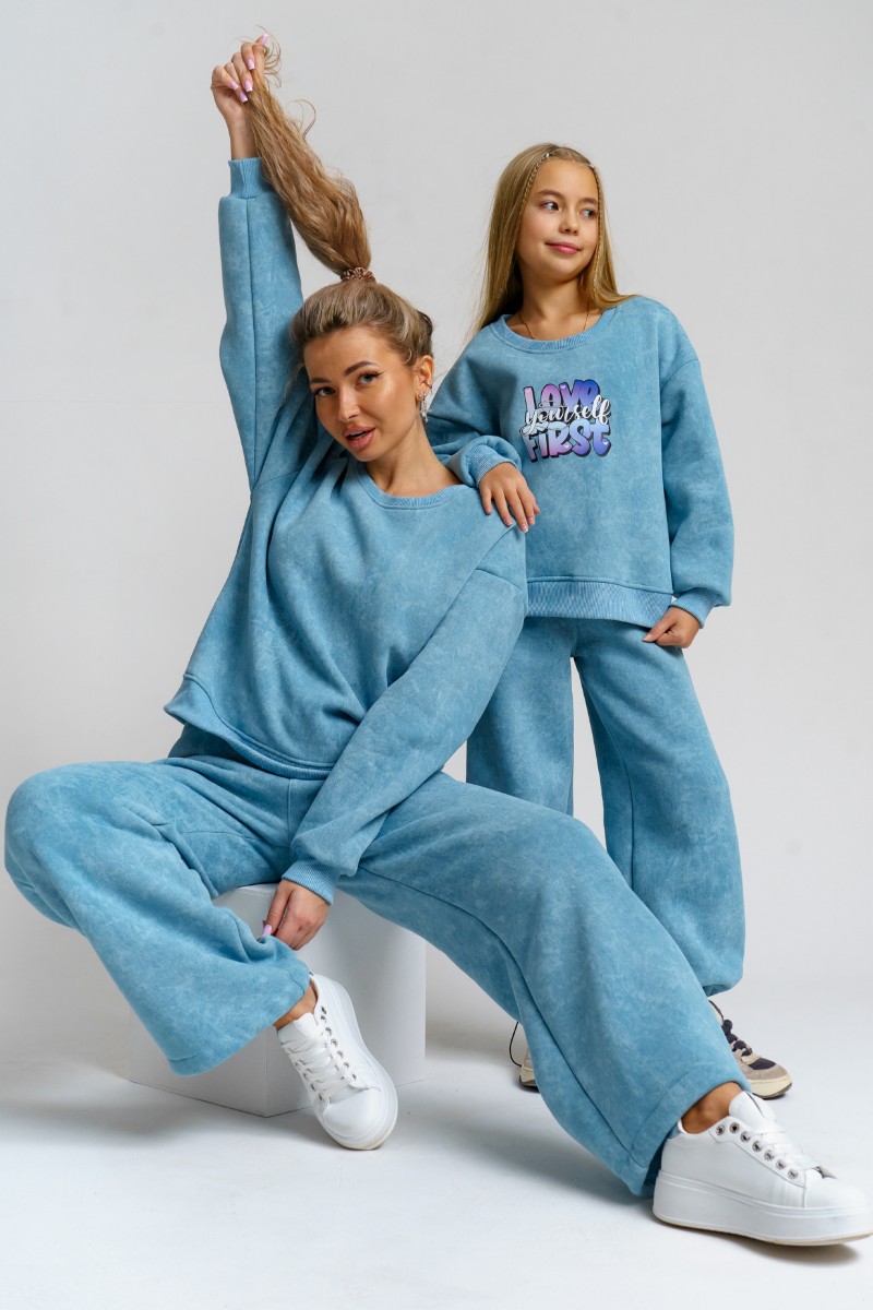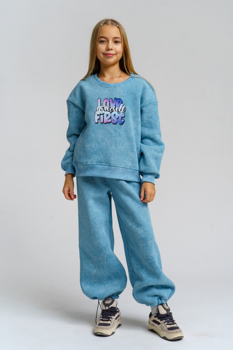 Костюм двойка детский 983Д футер 3-х нитка с начёсом пенье (р-ры: 28-44) голубой винтаж