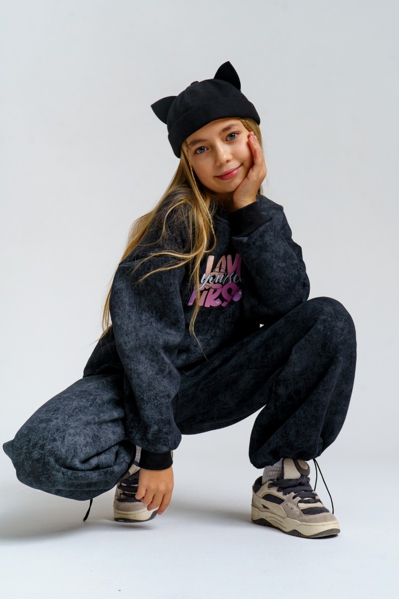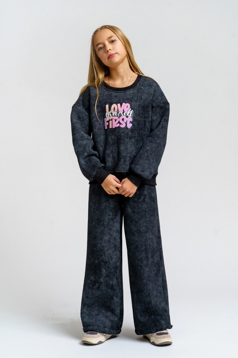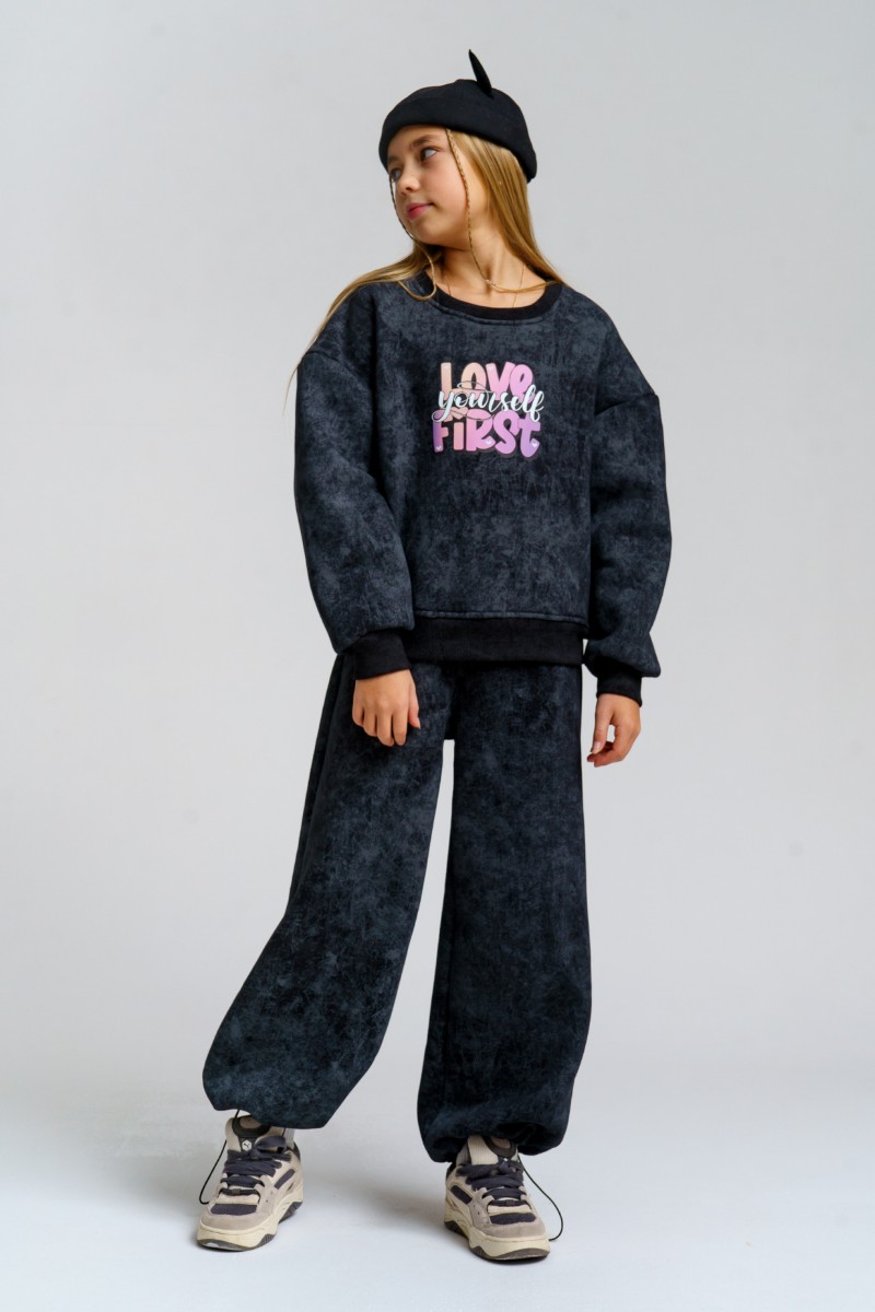 Костюм двойка детский 983Д футер 3-х нитка с начёсом пенье (р-ры: 28-44) черный винтаж