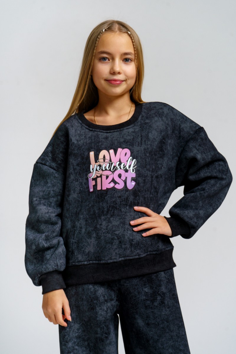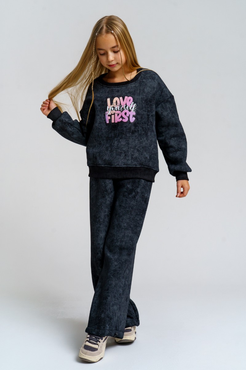 Представляем Вашему вниманию мягкий и уютный детский костюм двойку, сшитый из приятного телу, высококачественного футера 3-х нитки с начёсом пенье. Состоит из свитшота, украшенного принтом на полочке, и однотонных брюк свободного силуэта.