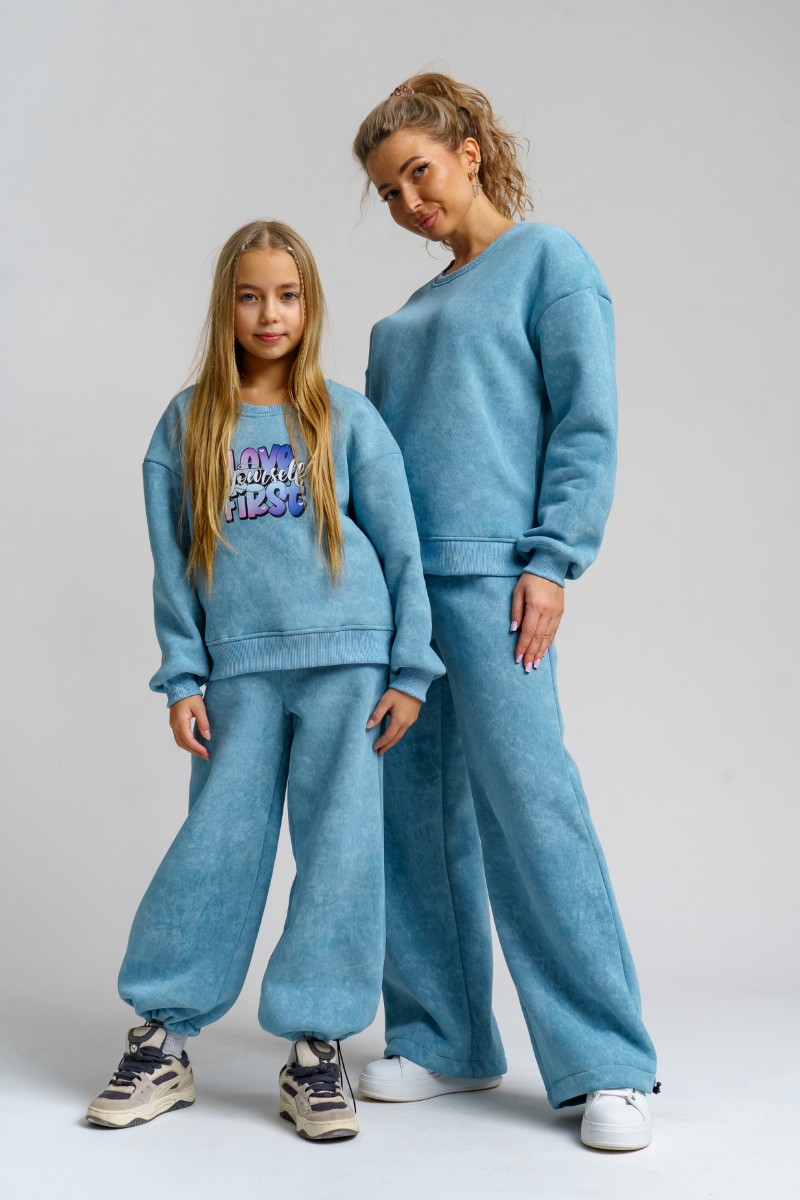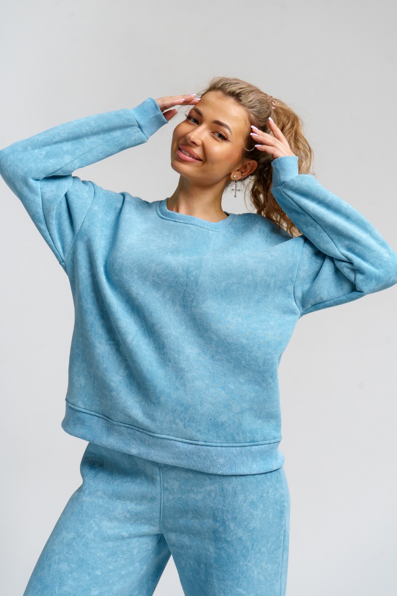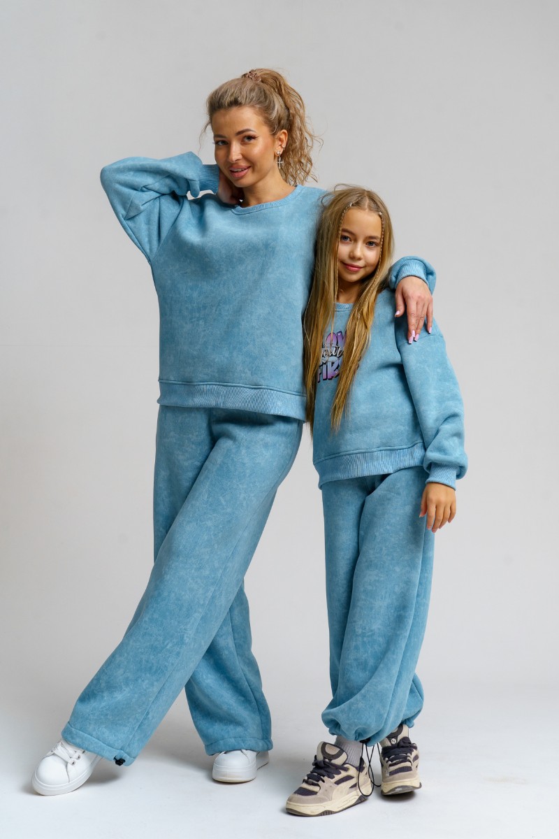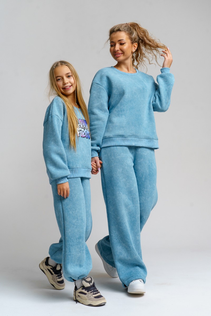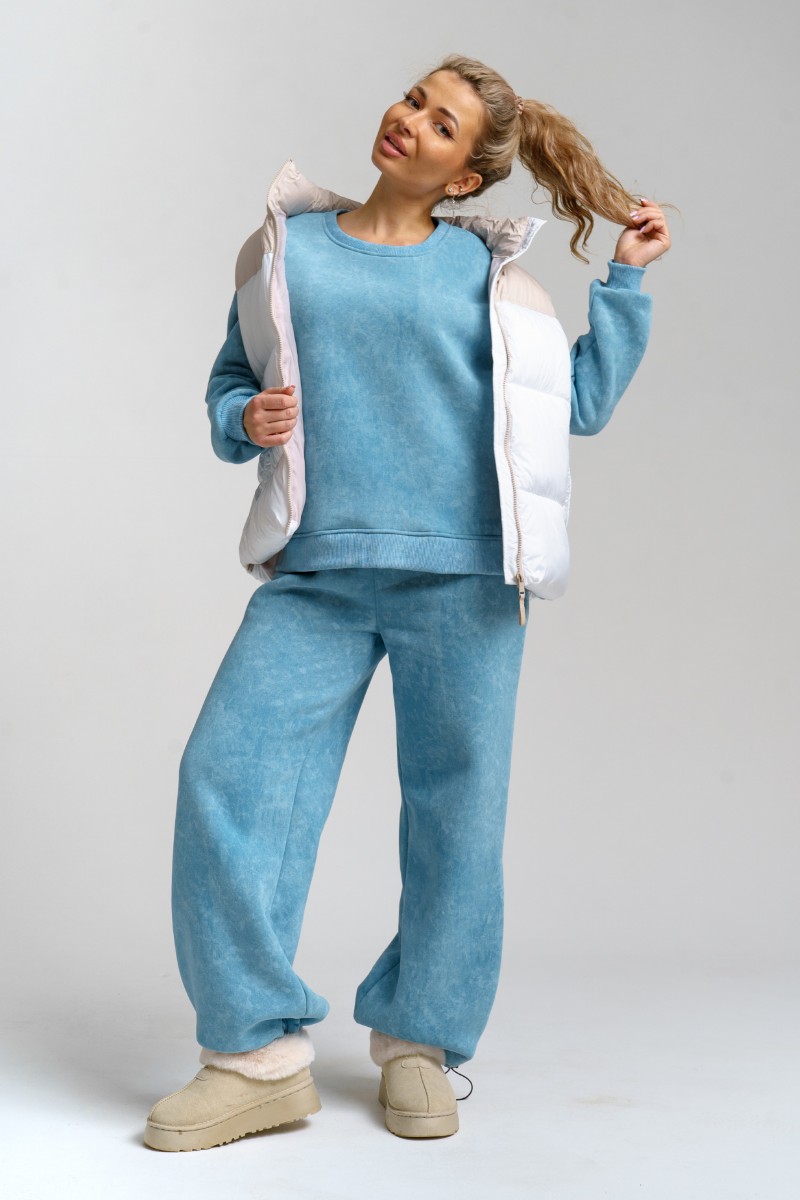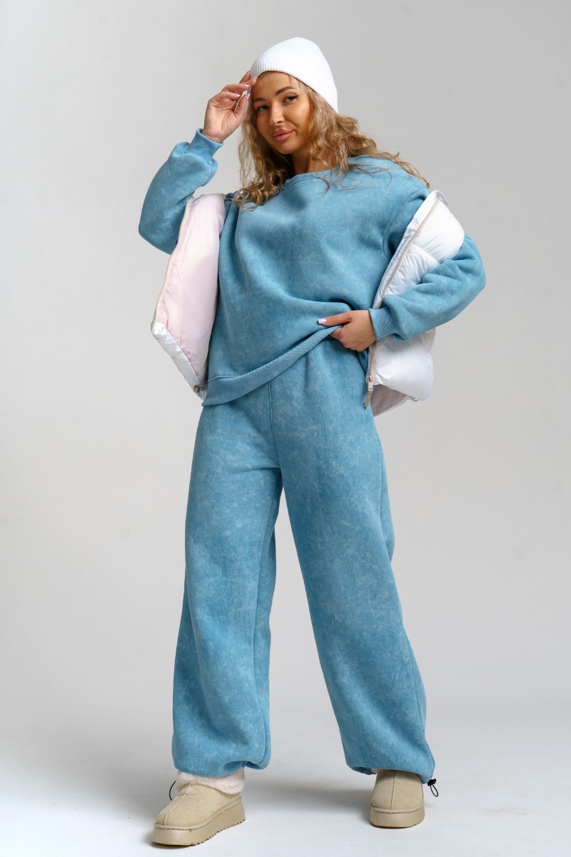Костюм двойка женский 983 футер 3-х нитка с начёсом пенье (р-ры: 44-54) голубой винтаж