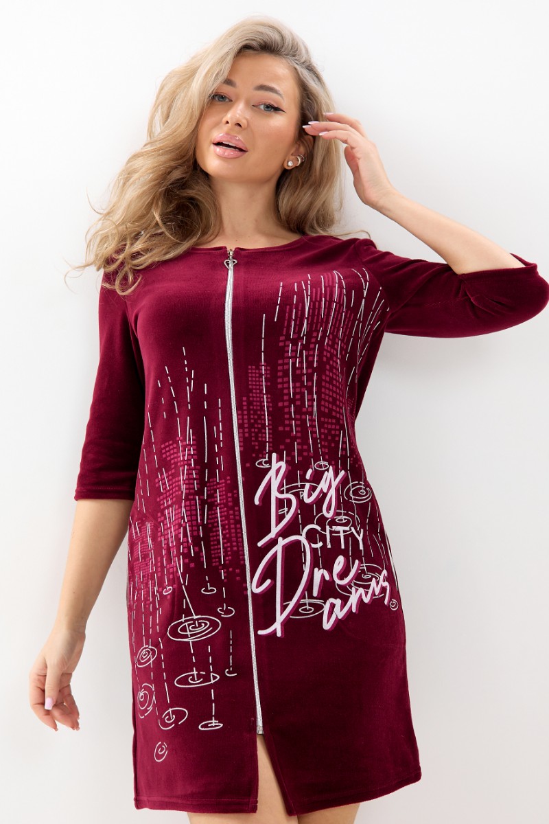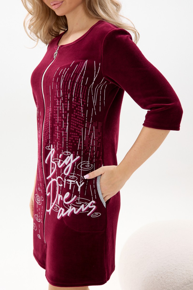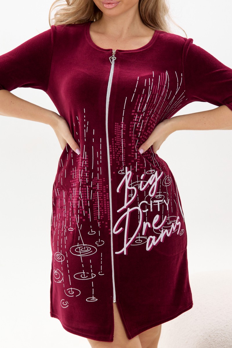 Представляем Вашему вниманию мягкий женский халат из велюра высокого качества - отличный выбор для тех, кто больше всего ценит нежность материала и приятную на ощупь текстуру. Нарядный и удобный домашний халат средней длинны на молнии, круглый неглубокий вырез, рукава длиной 3/4. Украшением этой модели стал эксклюзивный принт. Этот женственный и нежный наряд подарит ощущение роскоши и уюта своей обладательнице. В этом халате приятно не только окунуться в мир спокойствия и домашнего уюта, он идеально подойдет для встречи гостей.